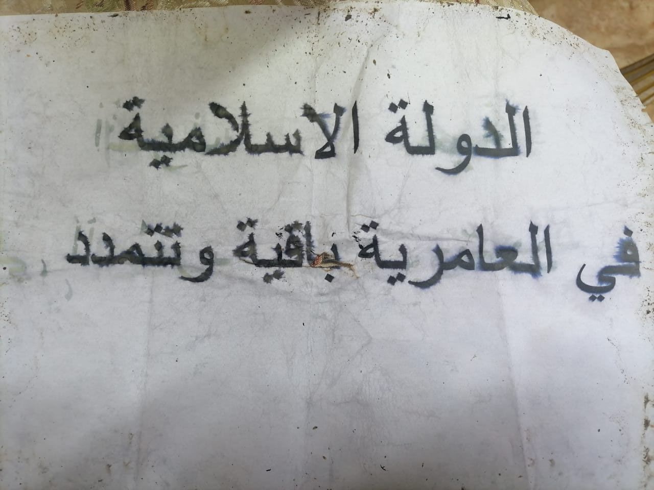 وأبلغ المصدر وكالة شفق نيوز؛ أن القوات الامنية استنفرت في منطقة العامرية بعد رصدها منشور في أحد الشوارع مكتوب على احد الجدران عبارة: (الدولة الاسلامية في العامرية باقية وتتمدد).