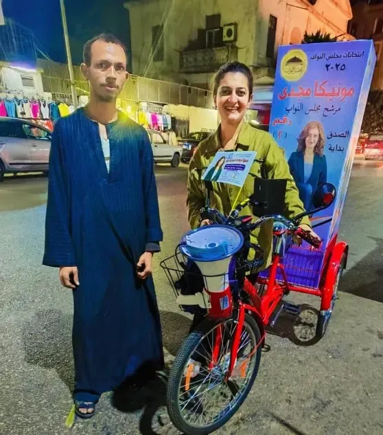 من جهتها، أضافت المرشحة مونيكا مجدي، عن دائرة شبرا، روض الفرج، وبولاق أبو العلا في محافظة القاهرة، لمستها الخاصة إلى المشهد الانتخابي بأسلوب فريد من نوعه، حيث خرجت إلى شوارع دائرتها على متن دراجتها الخاصة، لتجوب الأحياء حاملة شعارها الانتخابي "الأسد".