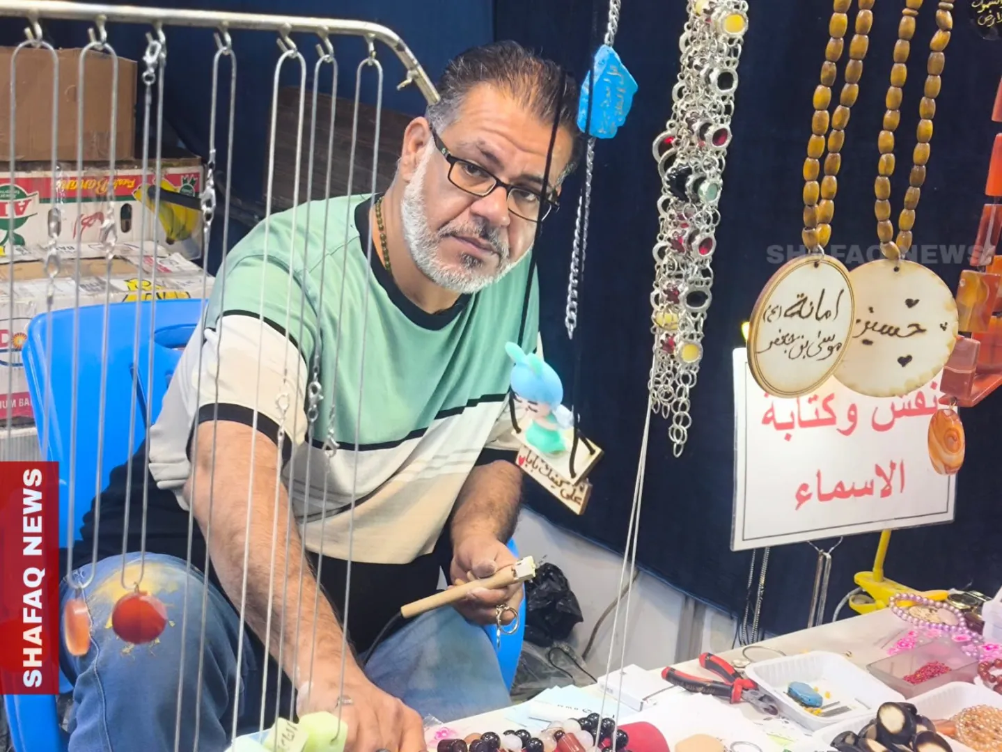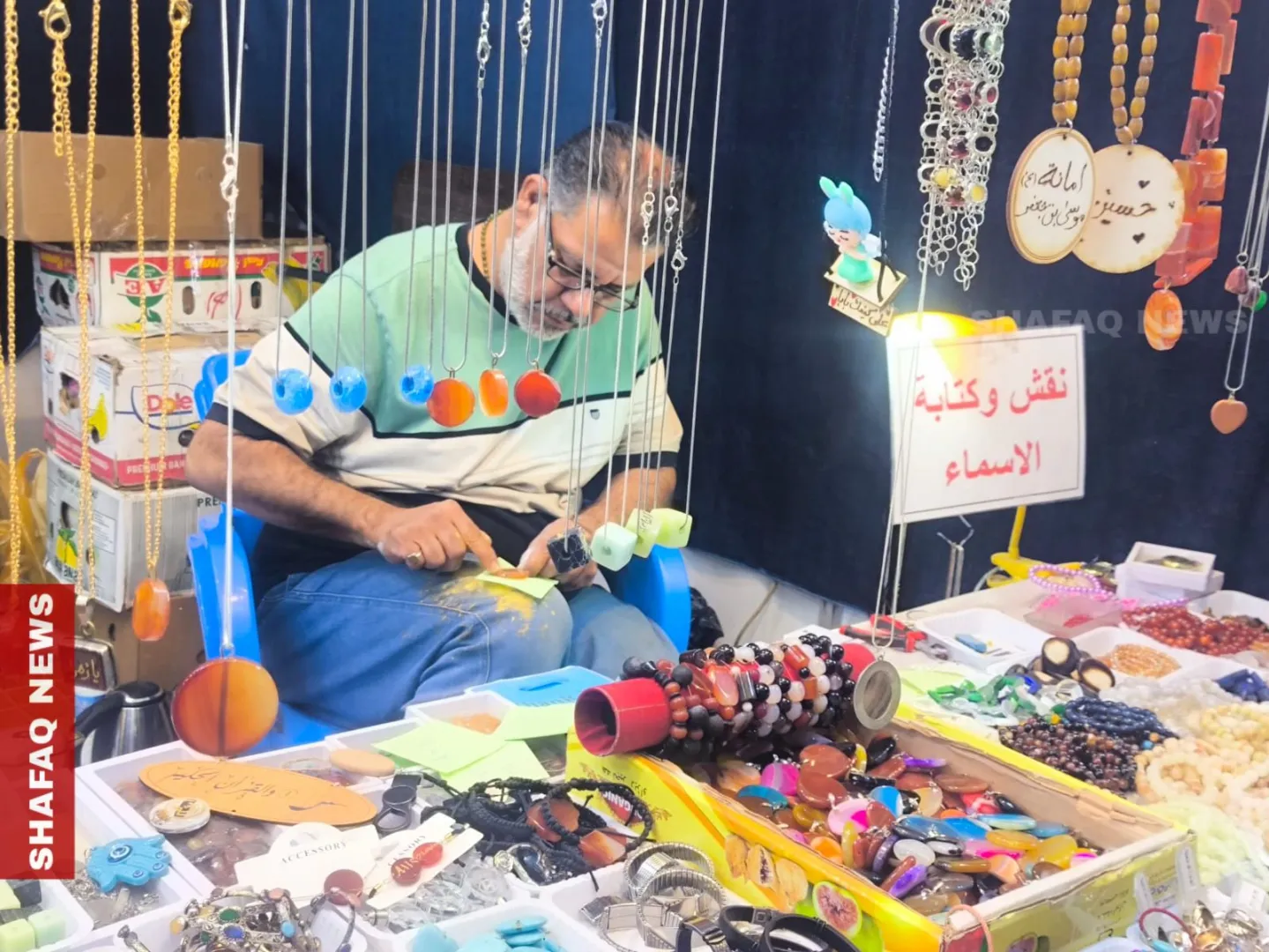 في زحمة الأجنحة والفعاليات التي يحتضنها المعرض العراقي المصري وسط محافظة كركوك، يجد الزائرون أنفسهم أمام زاوية صغيرة لا تلمع تحت الإضاءة، لكنها تجذب العيون بوهجٍ آخر. وهجُ الخشب المنحوت بحب، والأحجار المحفورة بصبر السنين. هناك يقف جاسم الهاشمي، الرجل الستيني القادم من مدينة كربلاء، الذي قطع ما يقارب 500 كيلومتر ليعرض إرثًا ظل يحمله بين يديه لأكثر من أربعة عقود.