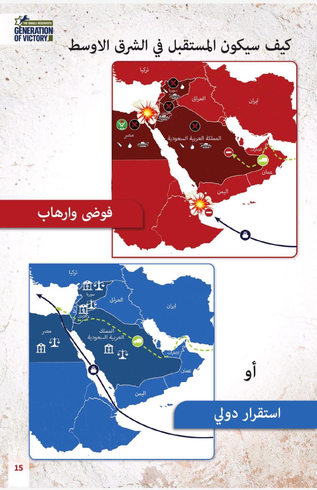 وتظهر الخريطة العراق ودول المنطقة ضمن الخطة الامريكية الموسعة، بهدف تحويل الشرق الاوسط الى منطقة اقتصادية واعدة وتقليل زخم وجود الفلسطيين في دول جوار اسرائيل، على حد تعبير القائمين على المشروع.