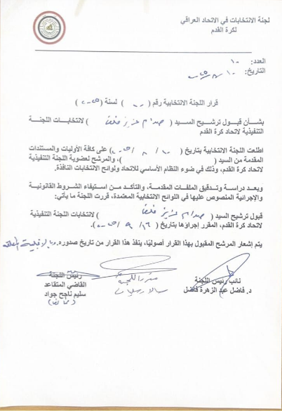 انتخابات اتحاد الكرة العراقي.. اعتماد ترشيح صدام عزيز واستبعاد جواد الجبوري