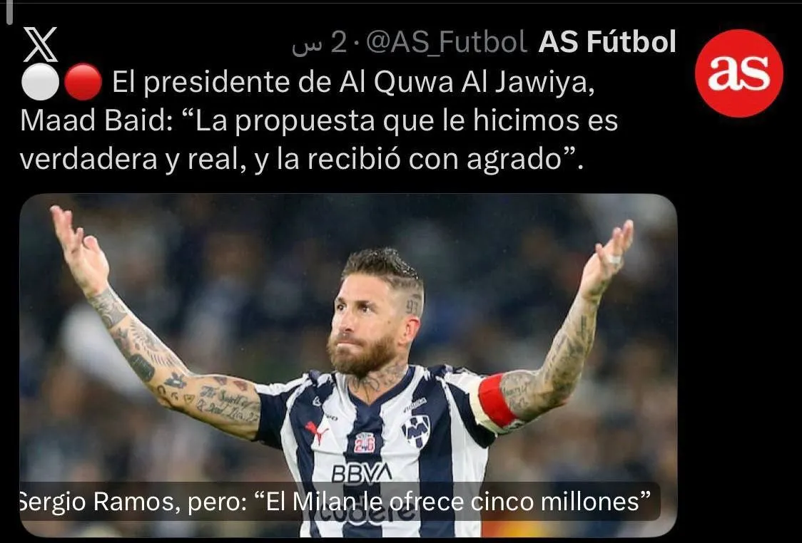 وكانت إدارة نادي القوة الجوية العراقي، أعلنت في 20 كانون الثاني/ يناير الجاري عن خطواتها الرسمية للتواصل مع النجم الإسباني سيرجيو راموس، مدافع منتخب إسبانيا السابق ونادي ريال مدريد، تمهيداً لبحث إمكانية انضمامه إلى صفوف الفريق في الموسم المقبل.