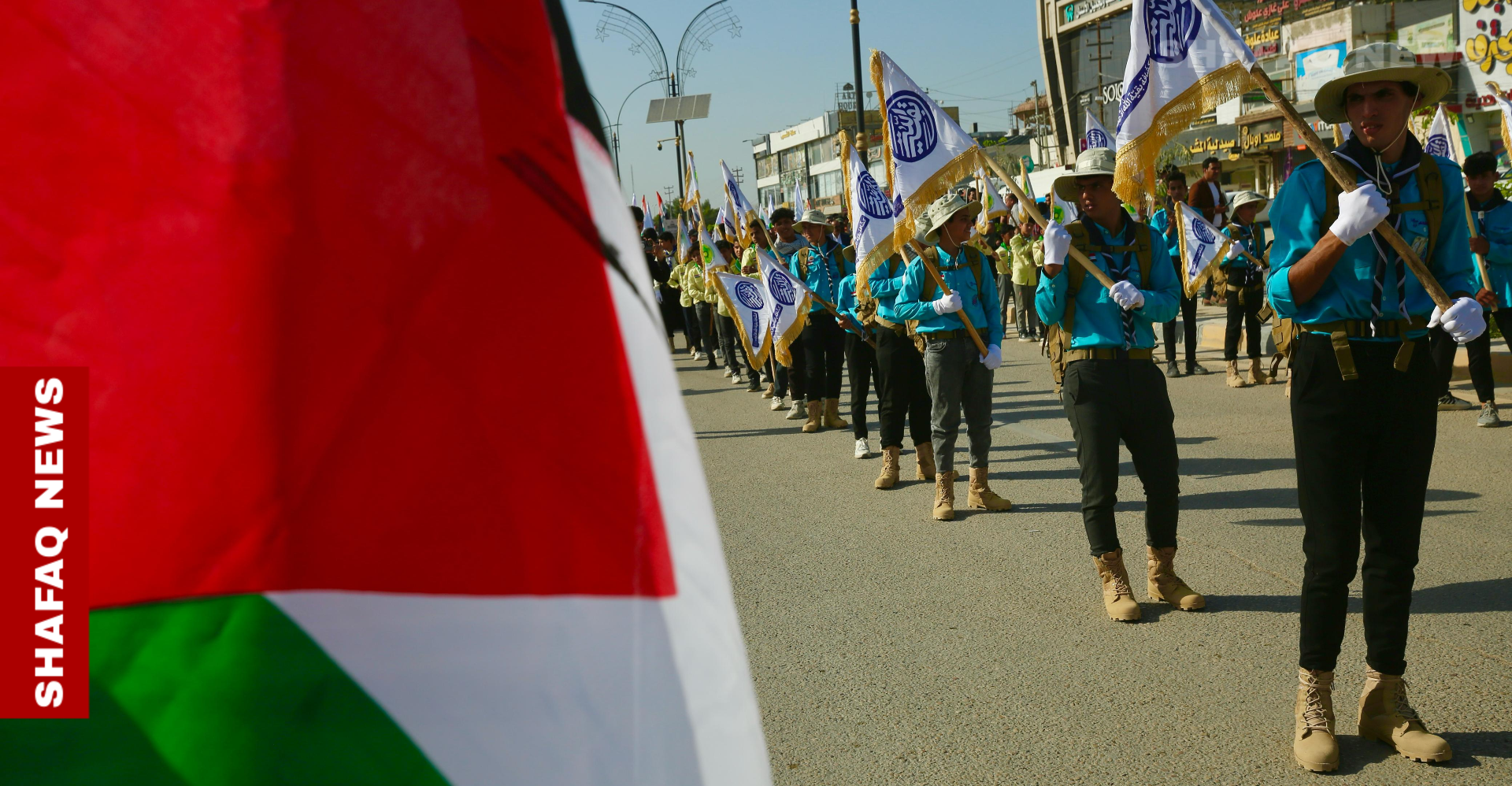 كركوك رافعين شعارات تندد بأمريكا والكيان الصهيوني المغتصب لأراضي فلسطين".