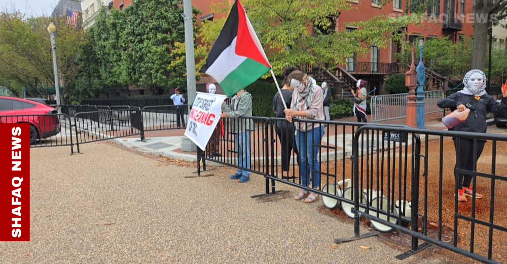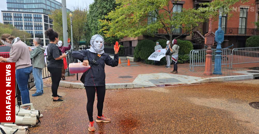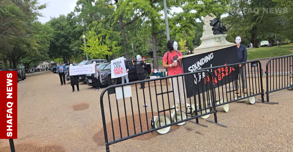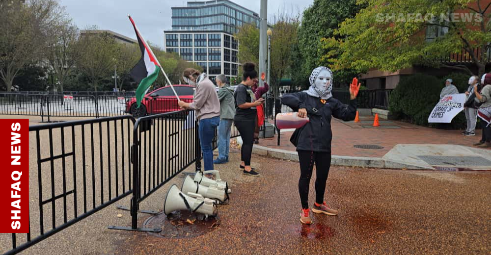 مراسل وكالة شفق نيوز في واشنطن، إن المتظاهرين لجأوا إلى أساليب رمزية للتعبير عن