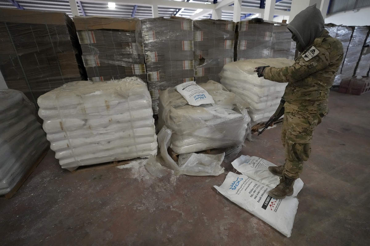 وفي مستودع بالأعلى، كانت صناديق من الورق المقوى جاهزة لإخفاء الحبوب المخدرة على أنها حمولة من بضائع اعتيادية إلى جانب كمية كبيرة من الصودا الكاوية المعبئة في أكياس بيضاء.