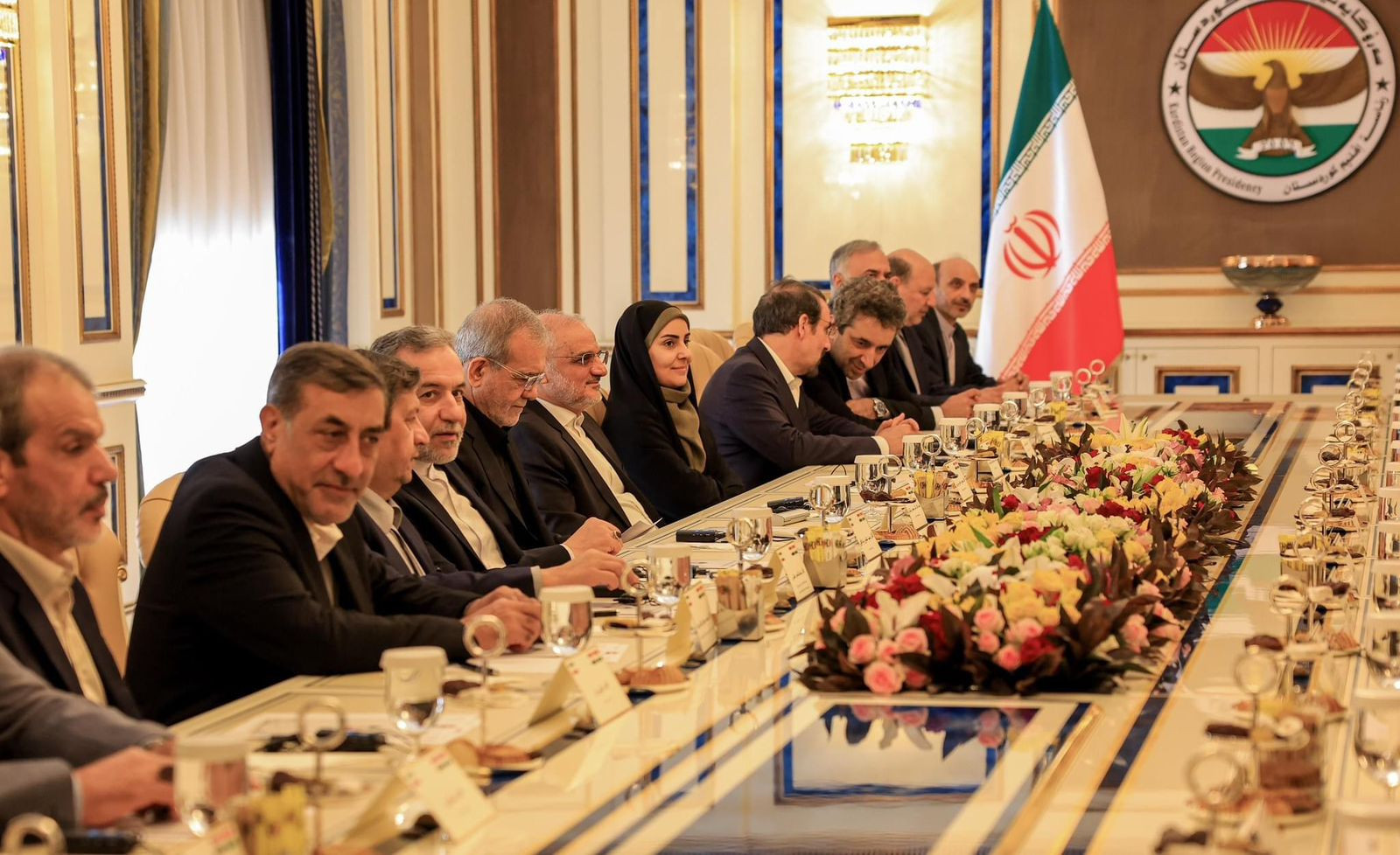 ووصل الرئيس الإيراني مسعود بزشكيان إلى أربيل في زيارة رسمية، حيث استقبله رئيس إقليم كوردستان نيجيرفان بارزاني وعدد من المسؤولين بمراسم رسمية في مطار أربيل الدولي.