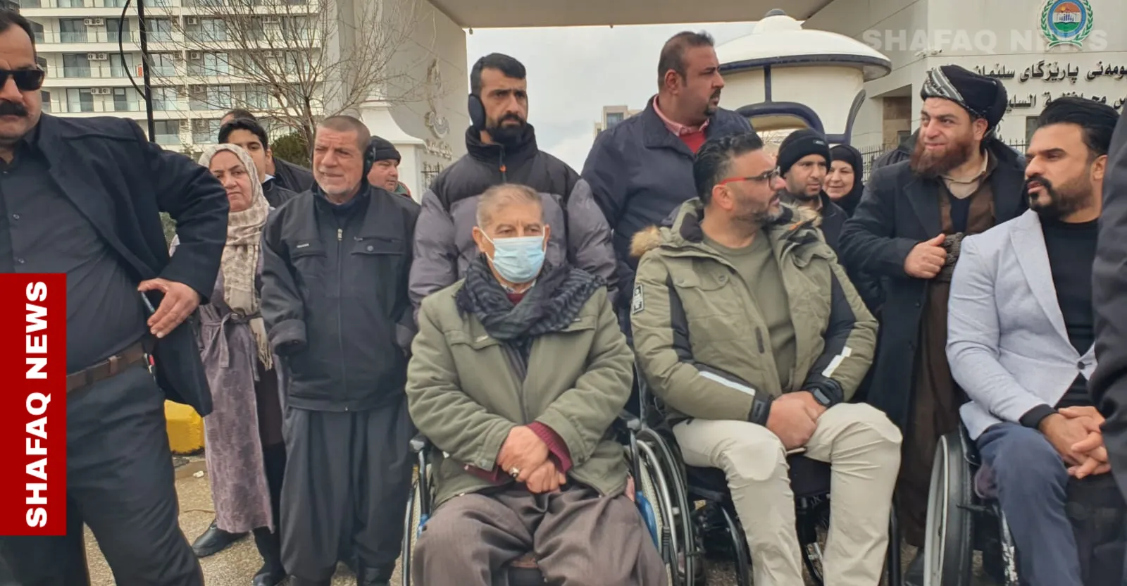 نظم عدد من ذوي الاحتياجات الخاصة في السليمانية، اليوم الخميس، احتجاجاً أمام مبنى المحافظة، تنديداً بتردي واقع الخدمات المقدمة لعوائلهم خلال فصل الشتاء، ولا سيما ما يتعلق بتوفير الوقود والنفط الأبيض.