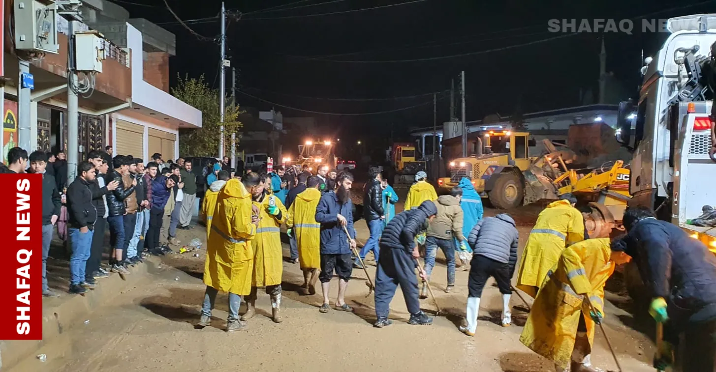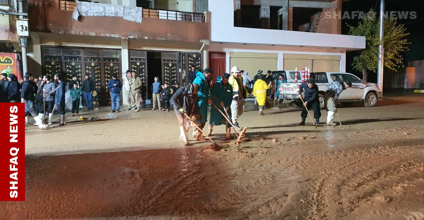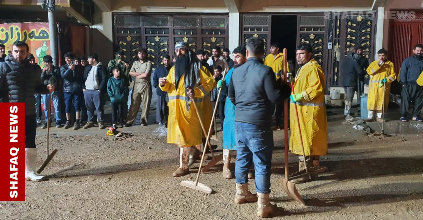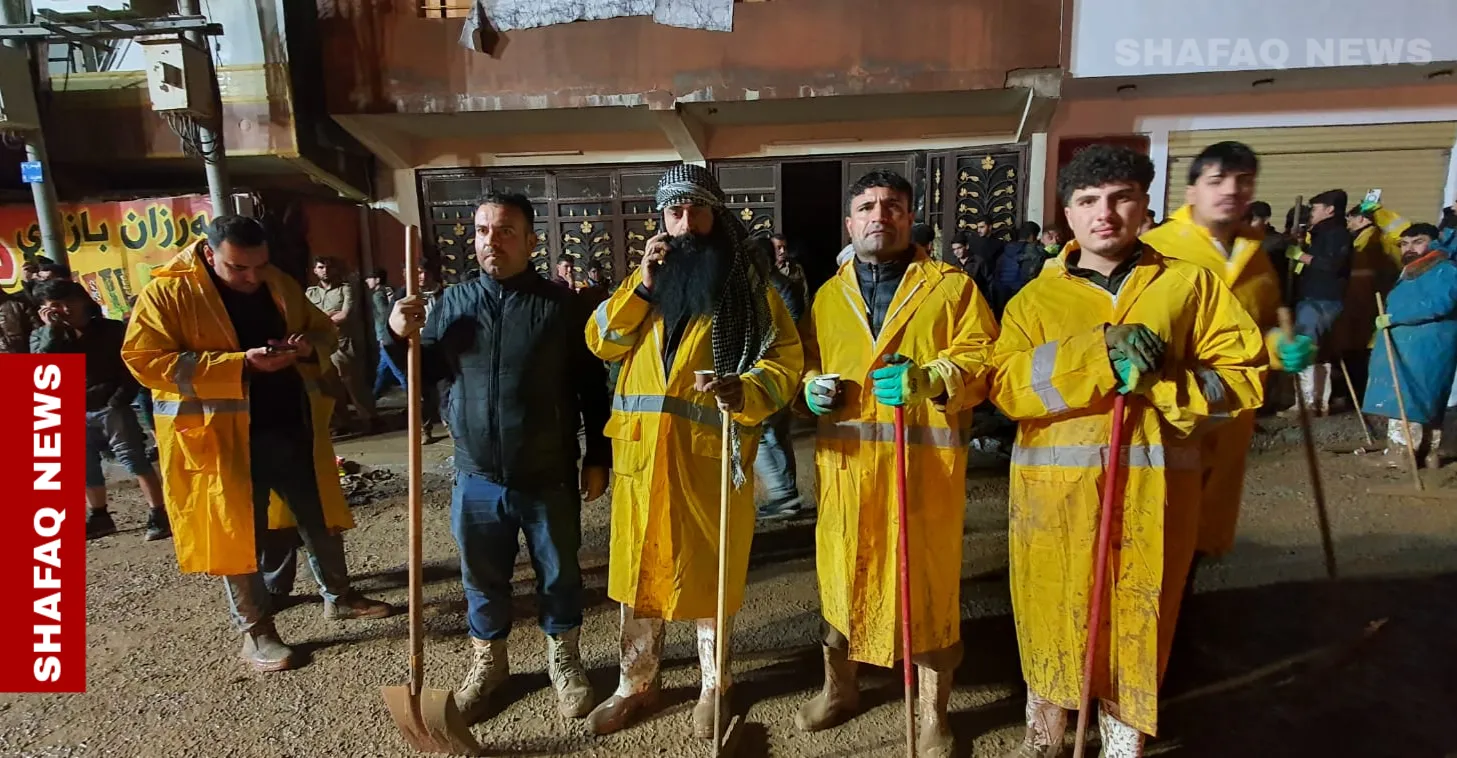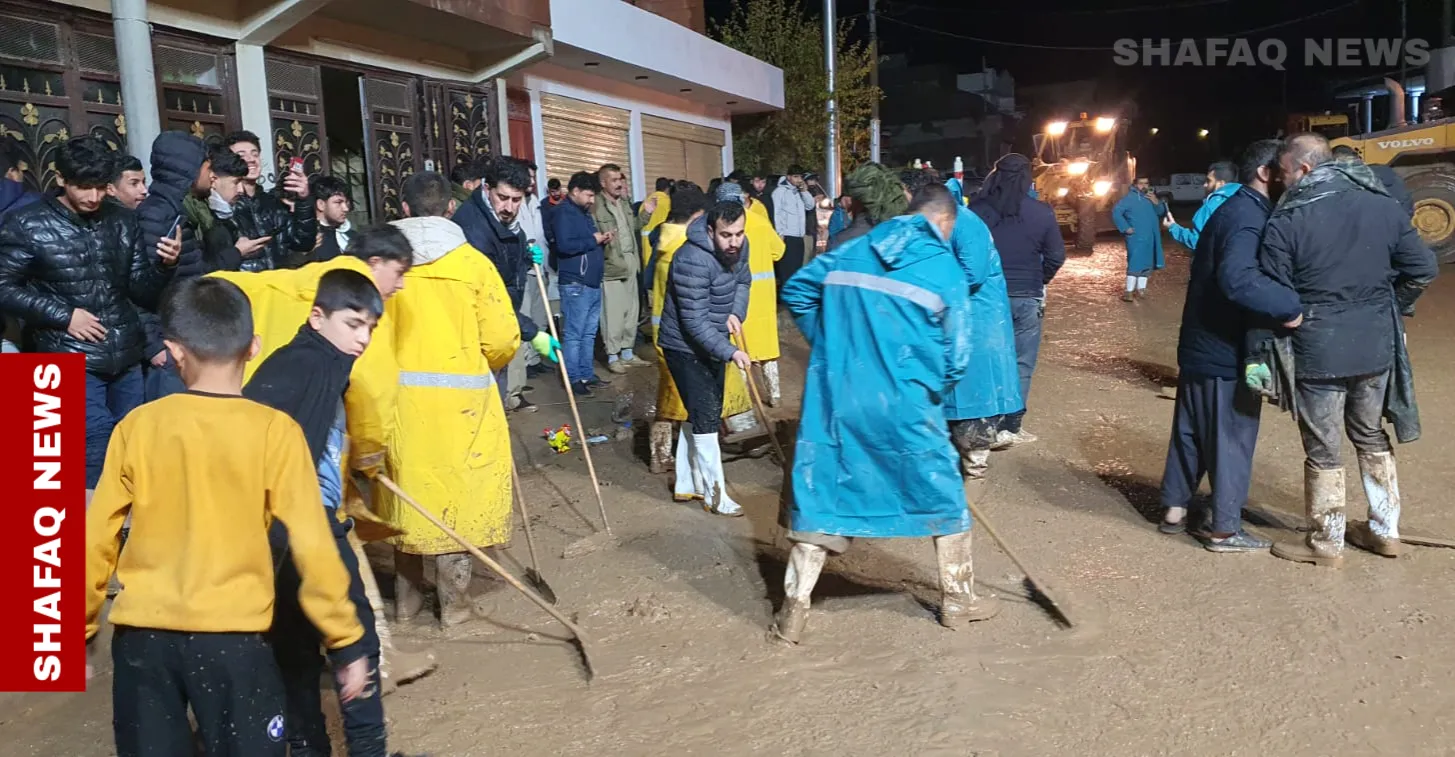 السليمانية.. حملة تطوعية لإزالة آثار السيول في جمجمال (صور) شفق نيوز/ رئيس حملة المتطوعين أرام ريشة