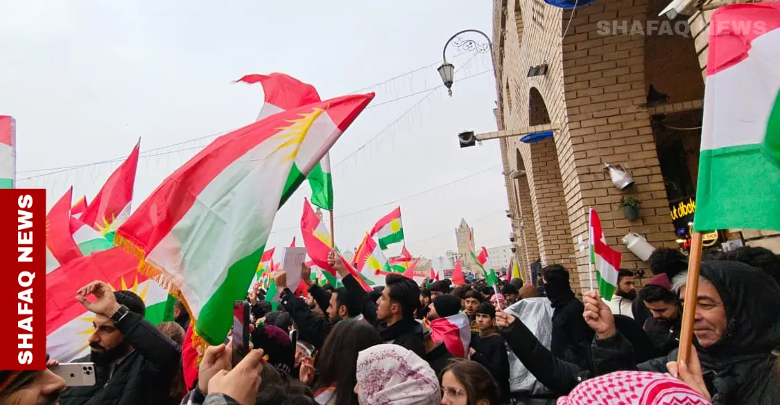 ورصدت كاميرا وكالة شفق نيوز، جموع المتظاهرين وهم يحملون علم إقليم كوردستان، ويرددون شعارات تطالب بحماية المكون الكوردي في سوريا.