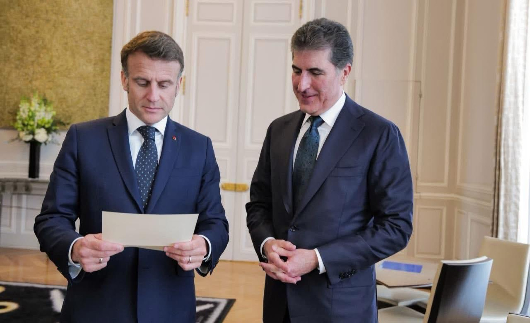 وأضاف: "تبادلنا وجهات النظر حول سُبل تعزيز العلاقات بين فرنسا والعراق وإقليم كوردستان، وتناولنا أبرز القضايا الإقليمية.. عبّرتُ عن شكري لماكرون على دعمه الثابت لإقليم كوردستان، ودوره المحوري في تعزيز الاستقرار في المنطقة".