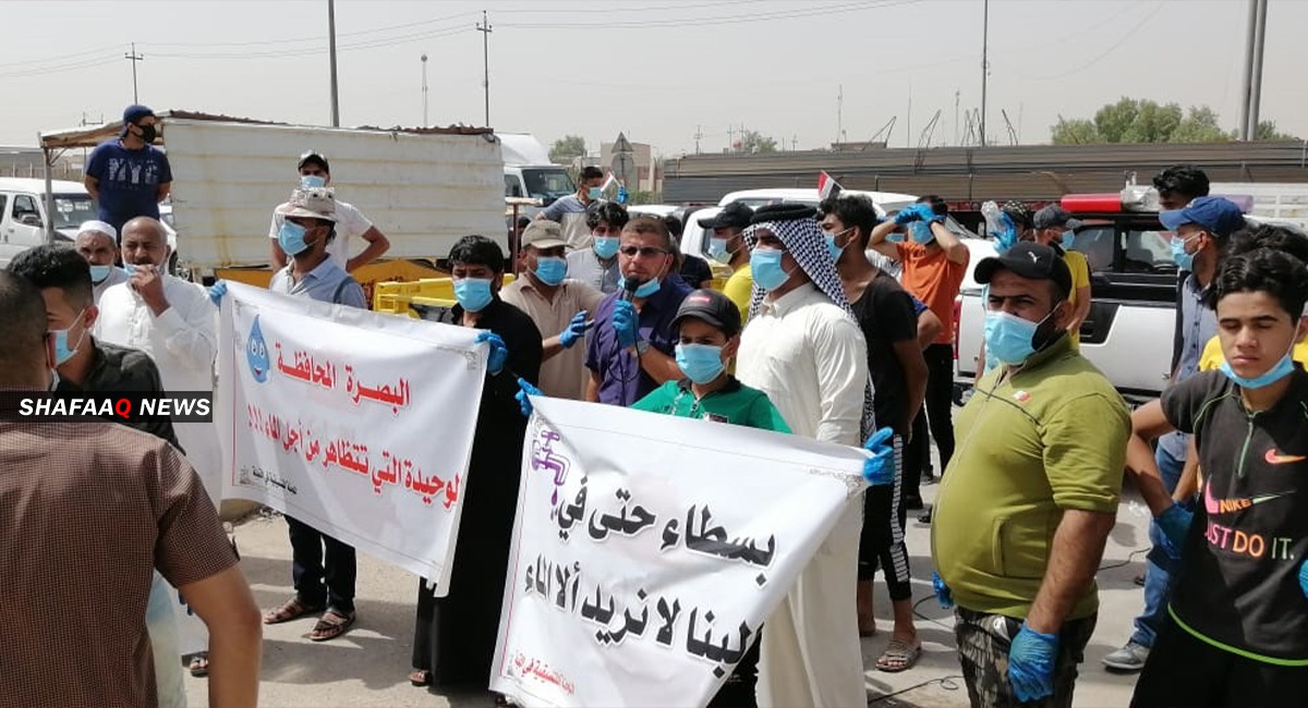ورفع المتظاهرون لافتات وشعارات تطالب بها الحكومة المحلية في البصرة بإقالة مدير دائرة ماء البصرة مهددين بالخروج بمظاهرات أخرى والقيام بعصيان في حال عدم الاستجابة لمطالبهم.