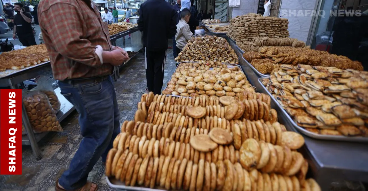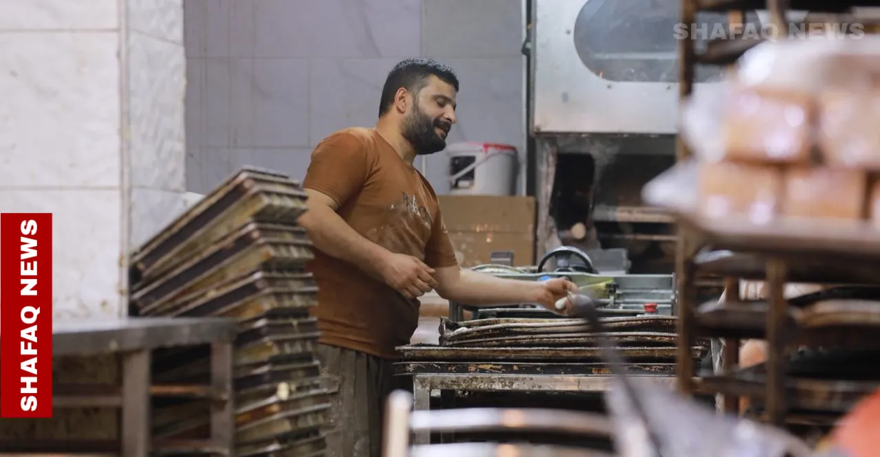 وتواجدت عدسة وكالة شفق نيوز في داخل أحد معامل الكعك والمخبوزات في شارع الكفاح، حيث تتحرك الأيادي بخفة ورشاقة، تعجن وتفرد وتزين، بينما تنبعث رائحة الطحين والزبدة والقرفة لتغري كل من يمر بجانب المحل.