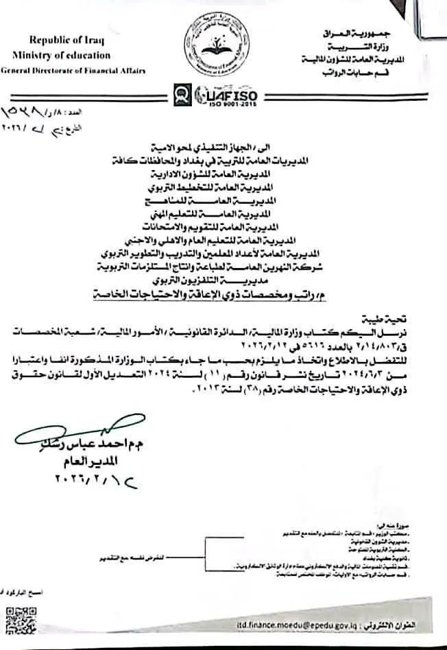 وأوضحت وزارة المالية الاتحادية، في كتاب موجّه إلى وزارة التربية، ورد لوكالة شفق نيوز، أن "المعين المتفرغ يستحق إجازة براتب اسمي مع المخصصات الثابتة المحددة من قبل الوزارة، في حال كان موظفاً".