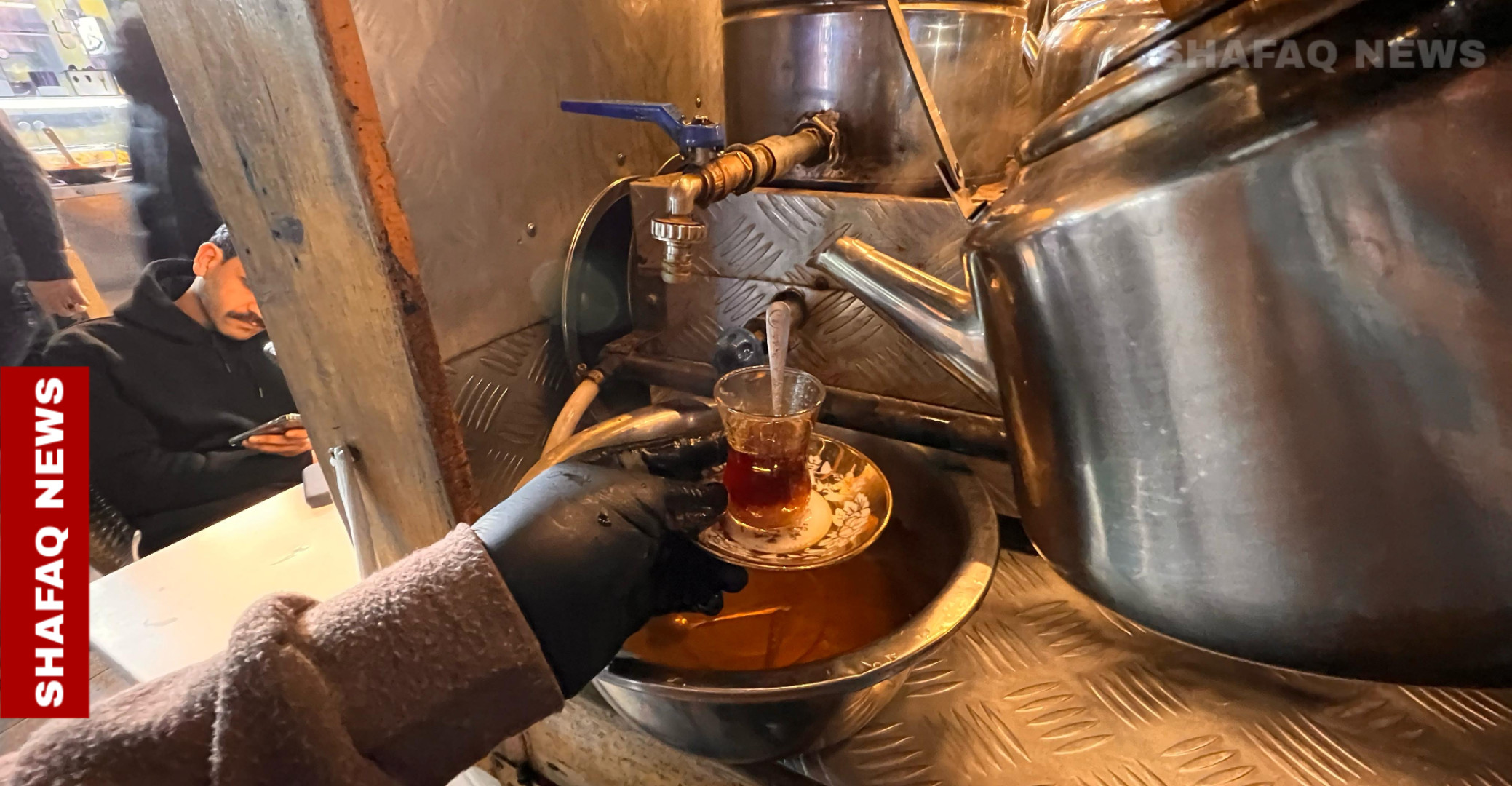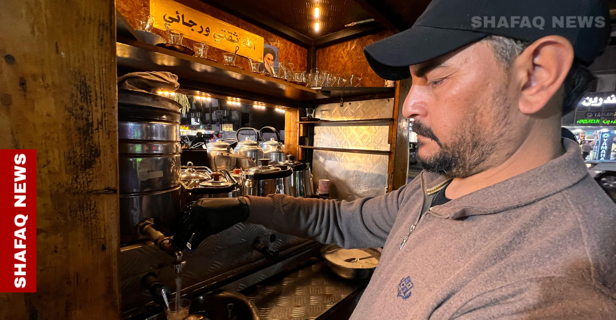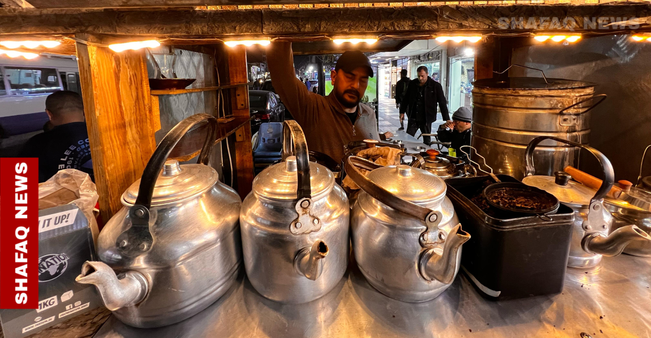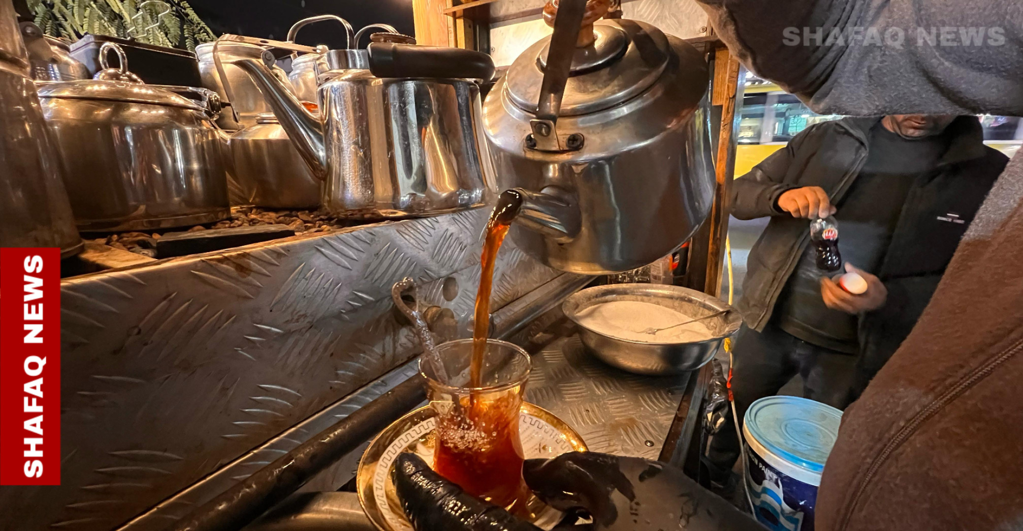 شفق نيوز/ يزيد الاقبال بعد الإفطار خلال أيام شهر رمضان، لاحتساء كاسات الشاي المعتقة من (حسن) صاحب البسطة الشهيرة لبيع الشاي العراقي في منطقة الكرادة ببغداد.