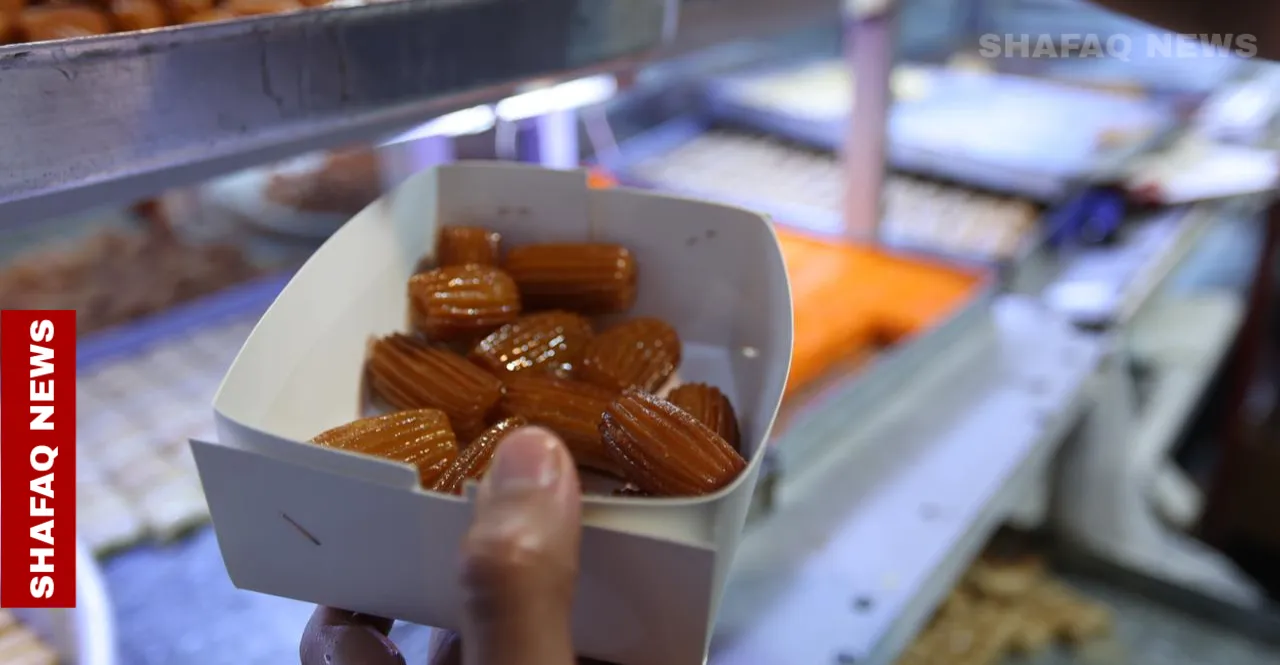 وتواجدت وكالة شفق نيوز، داخل أحد المعامل، حيث يعمل الصناع كخلية نحل، صوان تدخل الأفران وأخرى تخرج، وأيد تغمس قطع الحلوى في القطر قبل أن تصفها بعناية في علب الكرتون قبل بيعها.