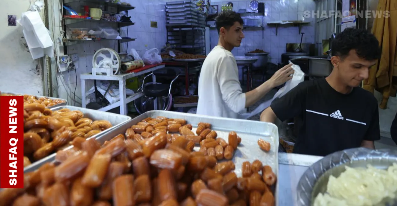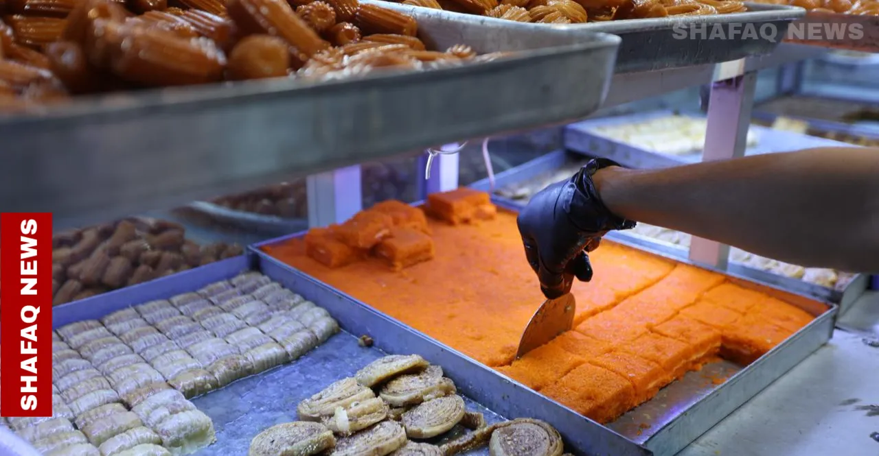 ففي العاصمة العراقية بغداد، يقبل الناس على محال بيع الحلوى، حيث تظهر صواني الحلويات تراص قطع "الداطلي" الذهبية، بينما تتدلى الزلابية بخيوطها المقرمشة، يكسوها بريق القطر "الشيرة -سكر مذاب في الماء-"، وتستريح زنود الست بجانبها محشوة بالقشطة.