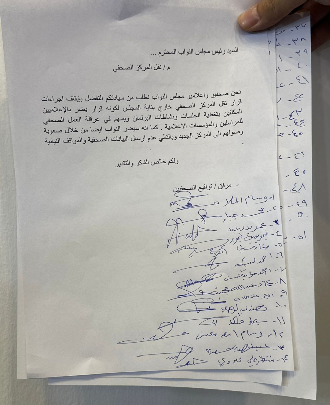 عشرات الصحفيين يوقعون على "عريضة رفض" نقل المركز الصحفي خارج البرلمان