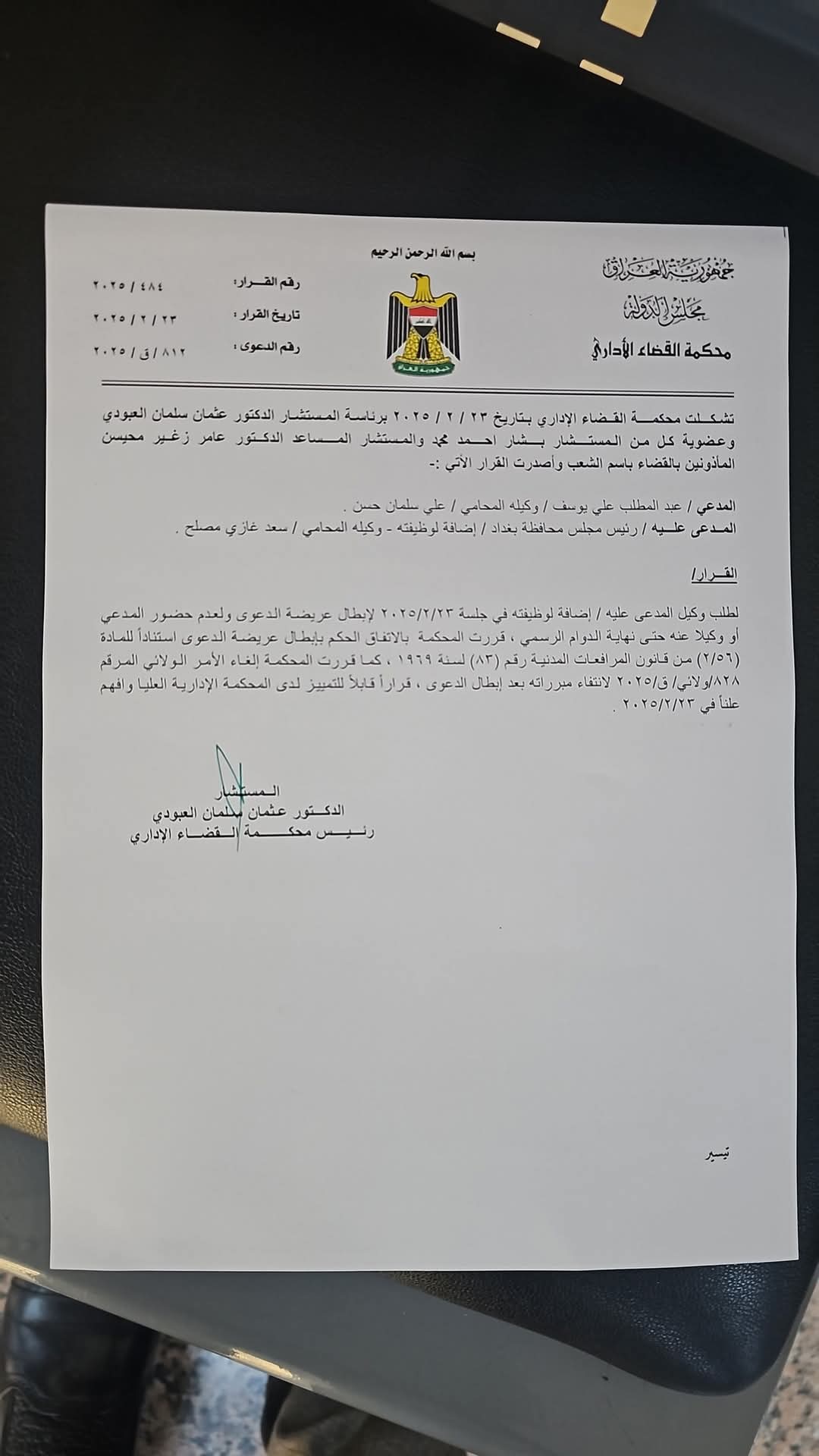 محافظ بغداد "منصب شاغر" بعد قرار قضائي (وثيقة)