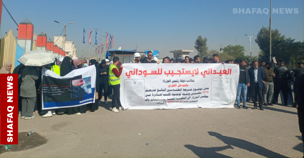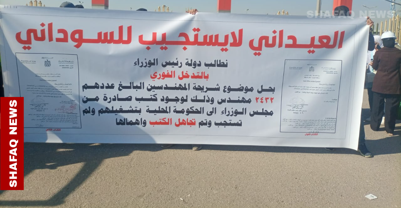 مهندسو البصرة يرفعون لافتة "العيداني لا يستجيب" وينتظرون  الحل من السوداني (صور)