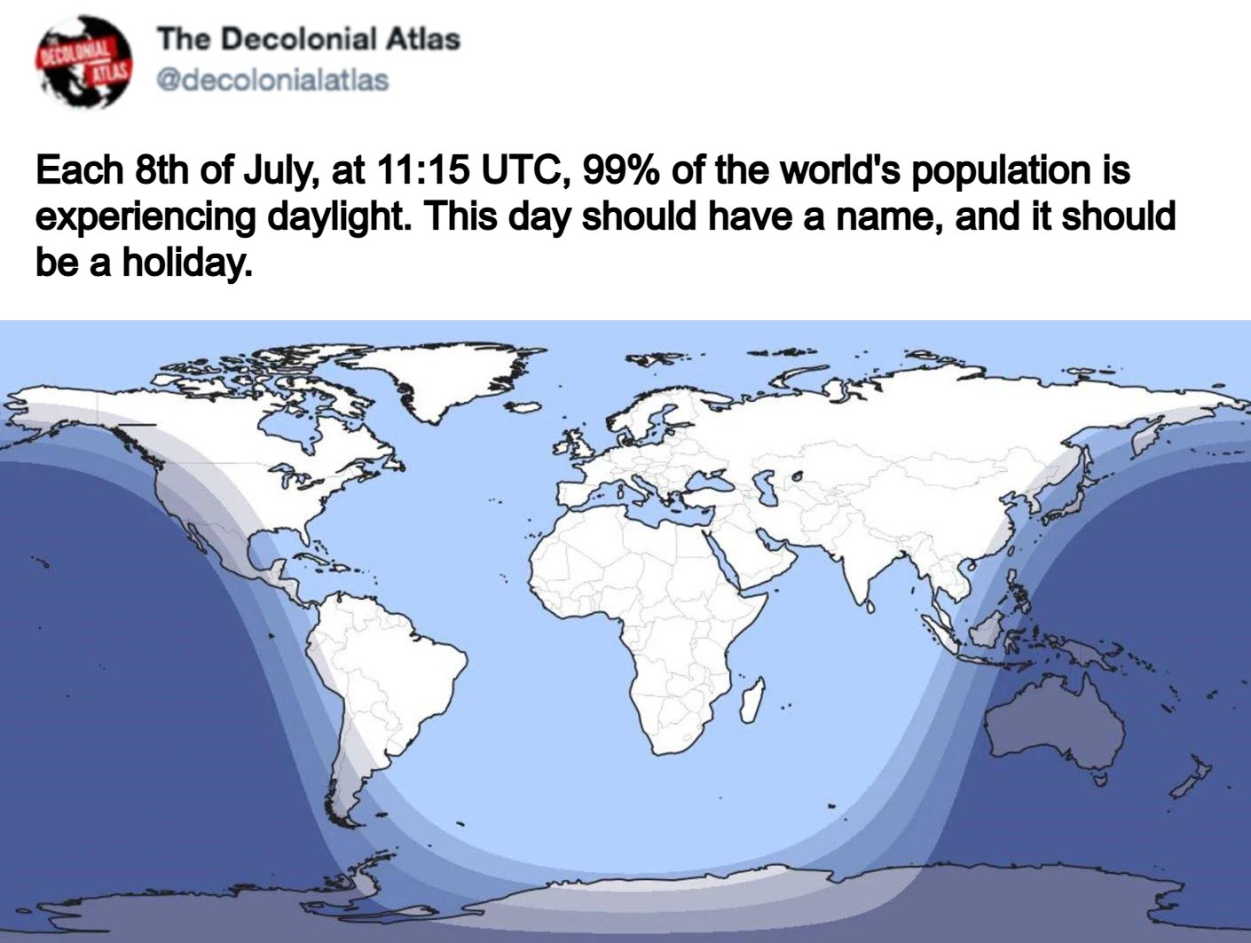 وزعمت نسخة منتشرة على نطاق واسع على "تويتر" أن 99% من السكان يمرّون بضوء النهار في تلك اللحظة، قائلة إن هذا اليوم يجب أن يكون له اسم ويجب أن يكون عطلة.