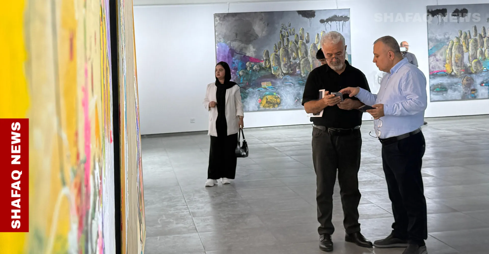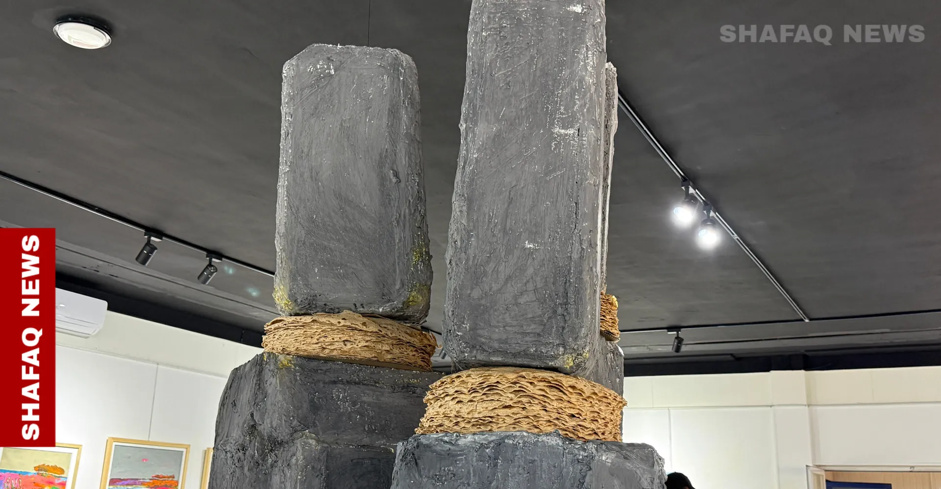 The exhibit also debuts a technique he calls “stabilization art,” which blends ordinary objects with symbolic imagery to convey layered narratives. “In one piece, I juxtaposed skyscrapers with traditional Kurdish bread pressed between stone blocks,” he explained, illustrating the daily struggle of laborers who risk their lives for a basic living.