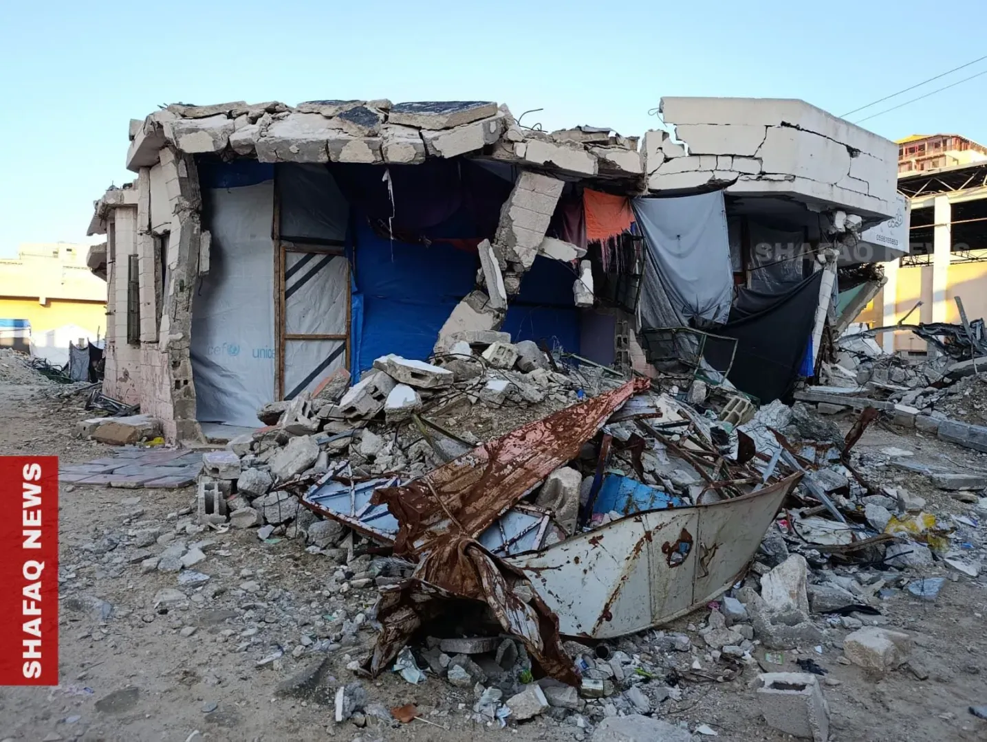 “I was born here and cannot leave the area,” he told Shafaq News, adding that “I built a room under the slanted roof and another from a tarp beside it, but we live in constant fear of concrete falling on us or being flooded by rain.”