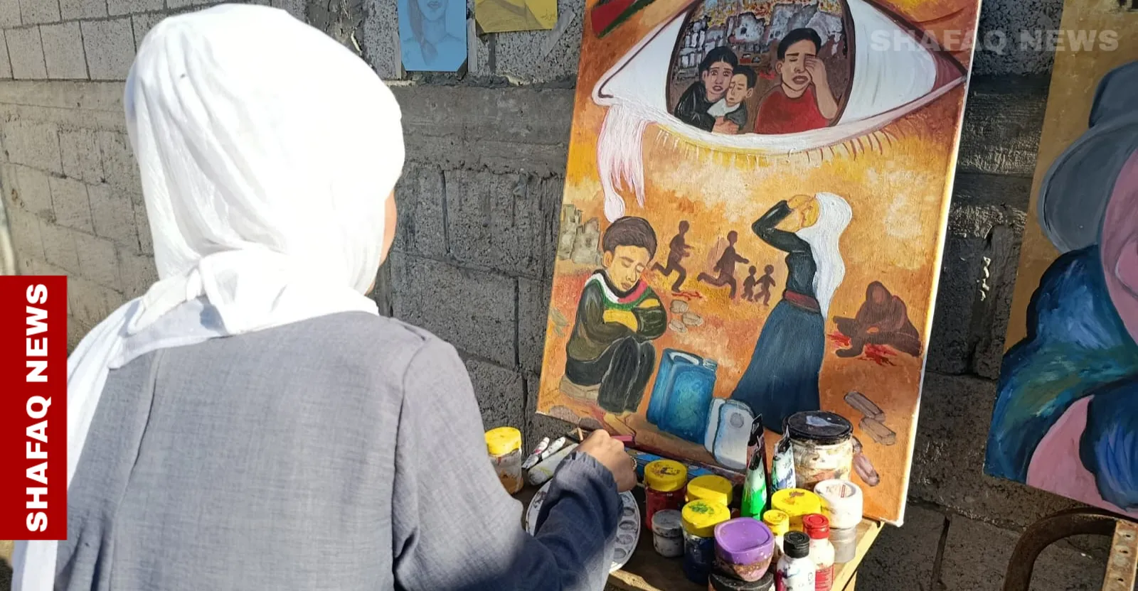 Mansour, a displaced resident from Rafah, told Shafaq News that “The war destroyed my home and studio completely, and I lost all my artworks buried under the rubble.” He had run a studio teaching children painting, Arabic calligraphy, and sculpture, but displacement deprived him of everything. Access to basic art supplies such as canvas, brushes, and paints became difficult after the destruction of local markets.