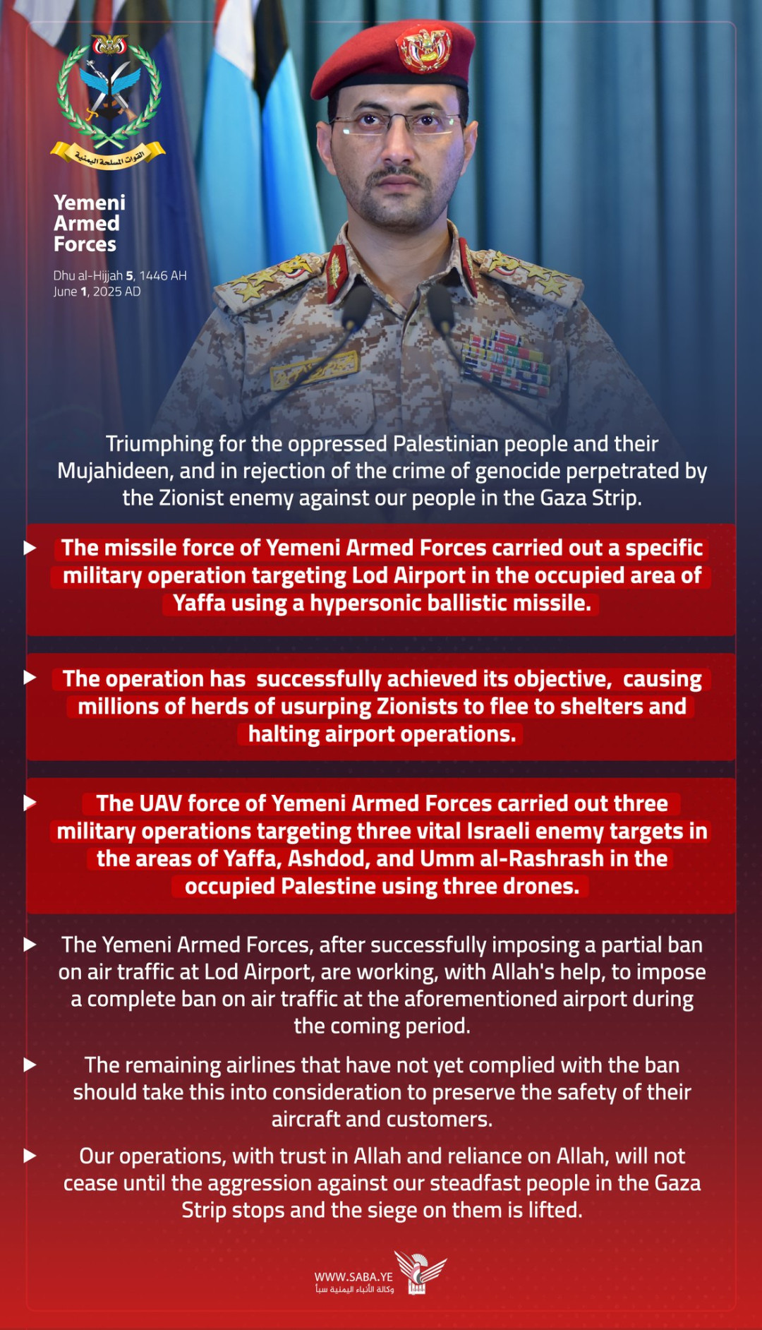 إيقاف العمل في مطار "تل أبيب" بسبب الصاروخ اليمني#اليمن_البأس_الشديد pic.twitter.com/biicmvXeCK