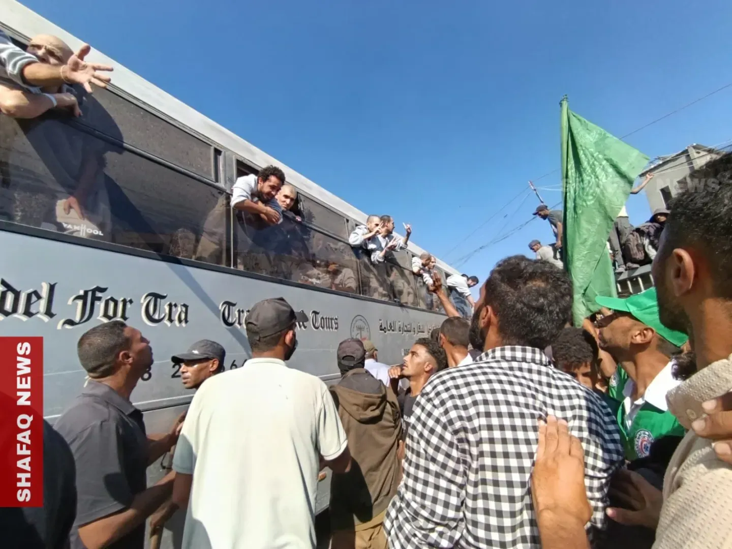 The crowds greeted the released detainees, with one video capturing a Kurdistan Region flag raised alongside the Palestinian flag—among several banners displayed in appreciation of those who contributed humanitarian aid to Gaza.