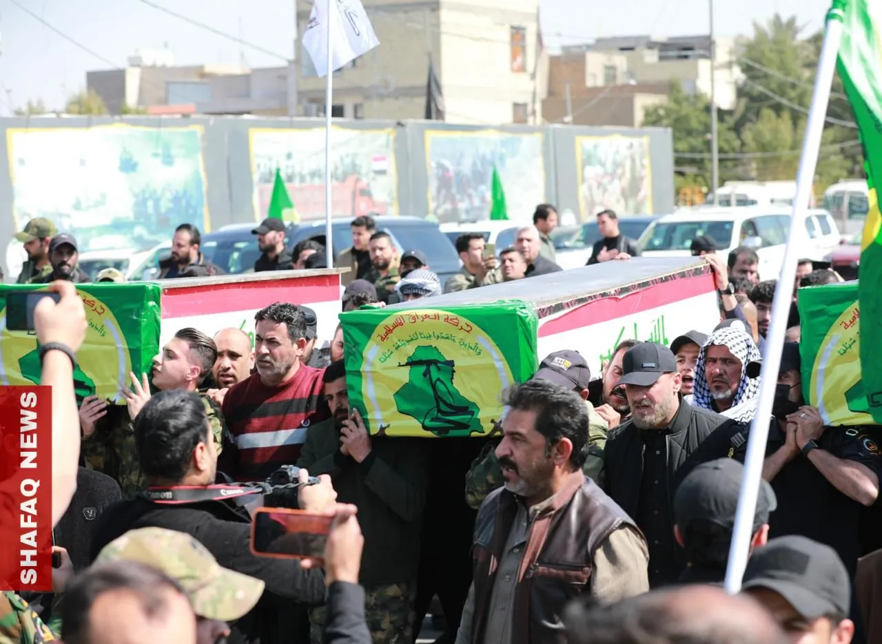 PMF members from the Kataib Imam Ali faction performed the funeral rites in Baghdad’s “PMF Media City” on Palestine Street.