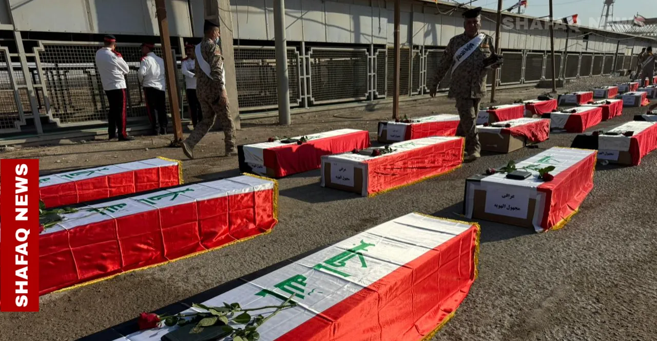 Shafaq News correspondent reported that the handover ceremony began in the morning at the border post east of Basra, where the remains of 70 Iraqi and 48 Iranian soldiers were exchanged between representatives of both sides.