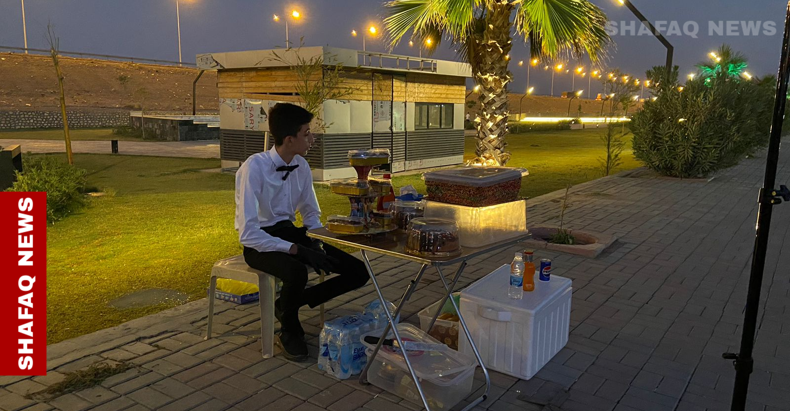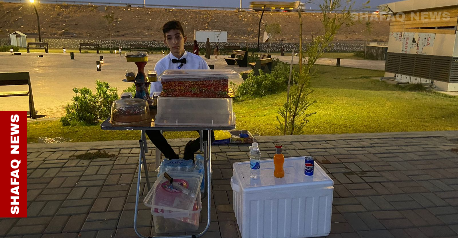 By late afternoon, he walks to the park, his voice rising above the crowd with a cheerful call: “Hot pies, delicious sweets!” There is no trace of shyness—only quiet dignity. “Hard work is necessary,” he reflects, speaking to Shafaq News, “but what matters most is earning in a halal (lawful) way.”