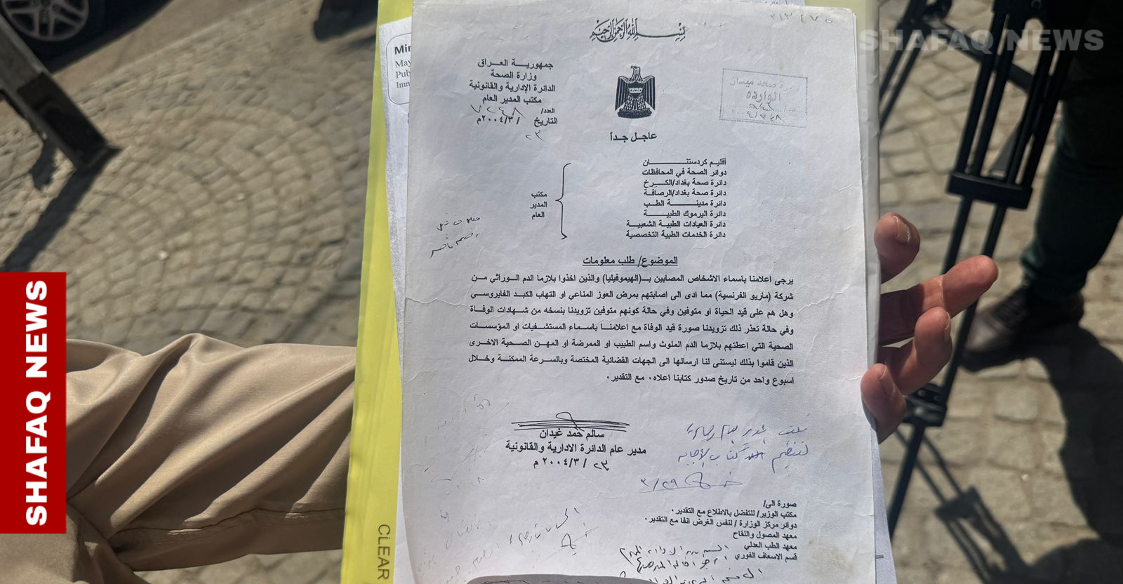 Aisha Omar, one of the demonstrators, recalled being summoned by the Health Ministry in 1984 to collect what was considered a life-saving treatment. “Two years later, we learned it was contaminated,” she told Shafaq News. “Many died. Survivors faced isolation and lifelong trauma.”