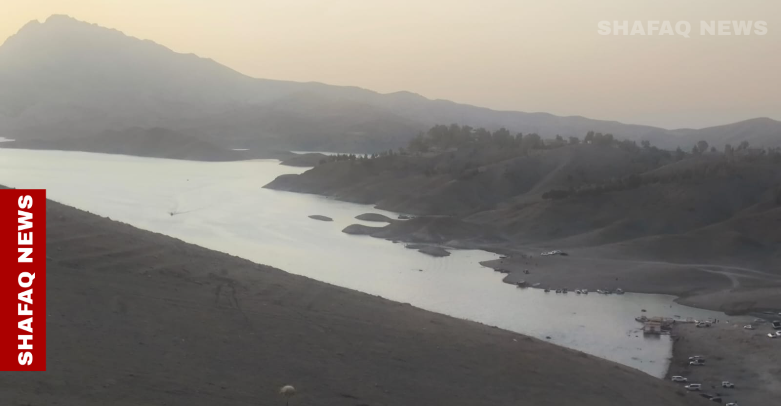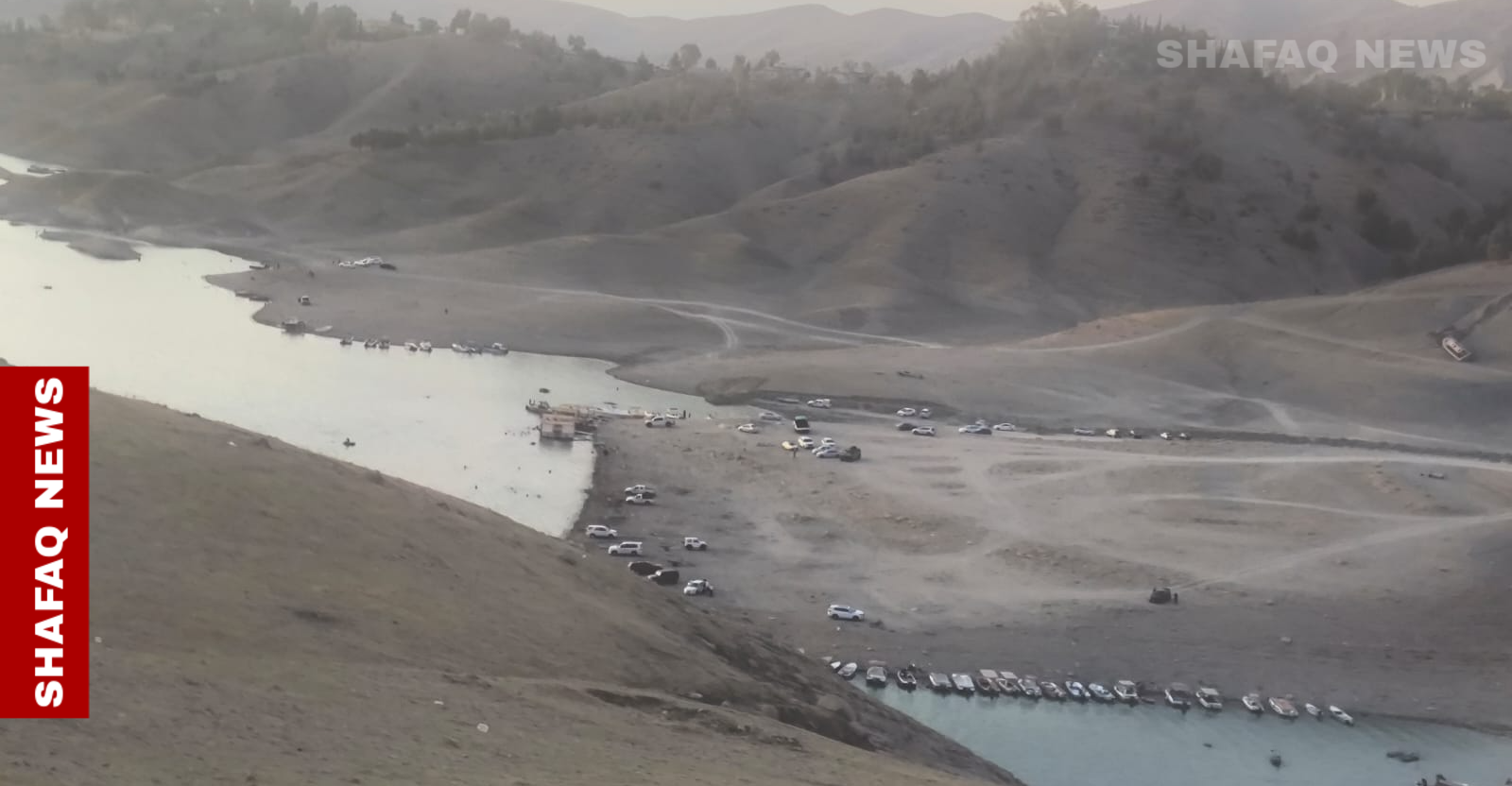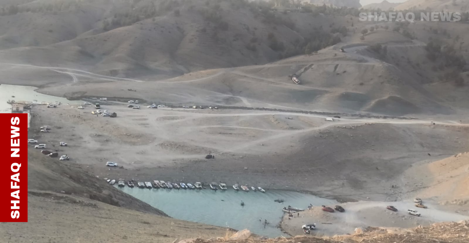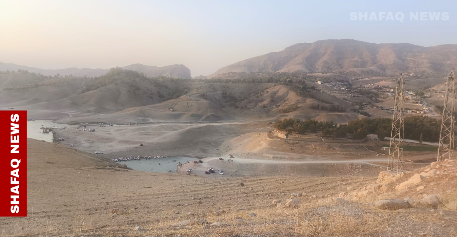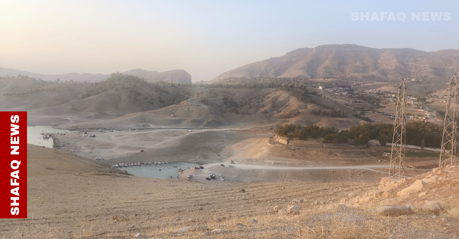 Photographs captured by Shafaq News reveal a stark retreat of the reservoir’s shoreline, with stretches of dry ground replacing once-submerged areas. Tourists, however, continue to visit the site, which remains a popular summer destination.