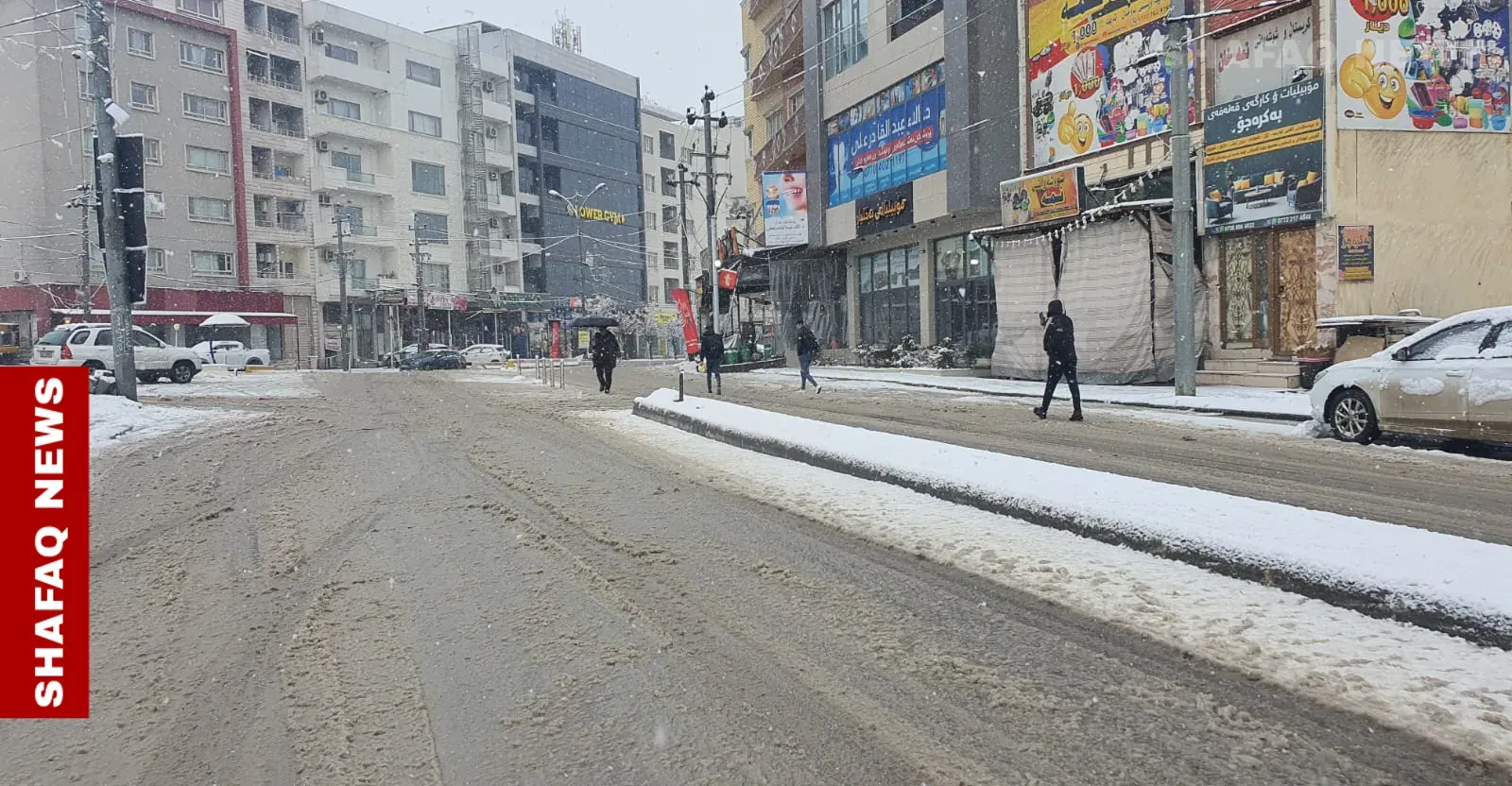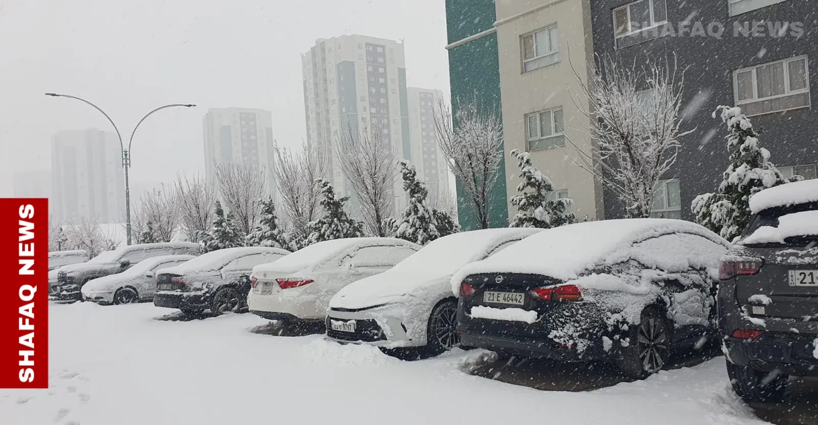 هیمان شار هەولێر پایتەخت هەرێم کوردستان مەوقەیل نوویگ وەگەرد وەفر توومار کەێد، و جادە و بینایەیلی وە رەنگ چەرمگ پووشیەن، کە زمسانیگ پڕ لە سەردی و وەفر فرەیگ وەپیەو رەد بوود.
