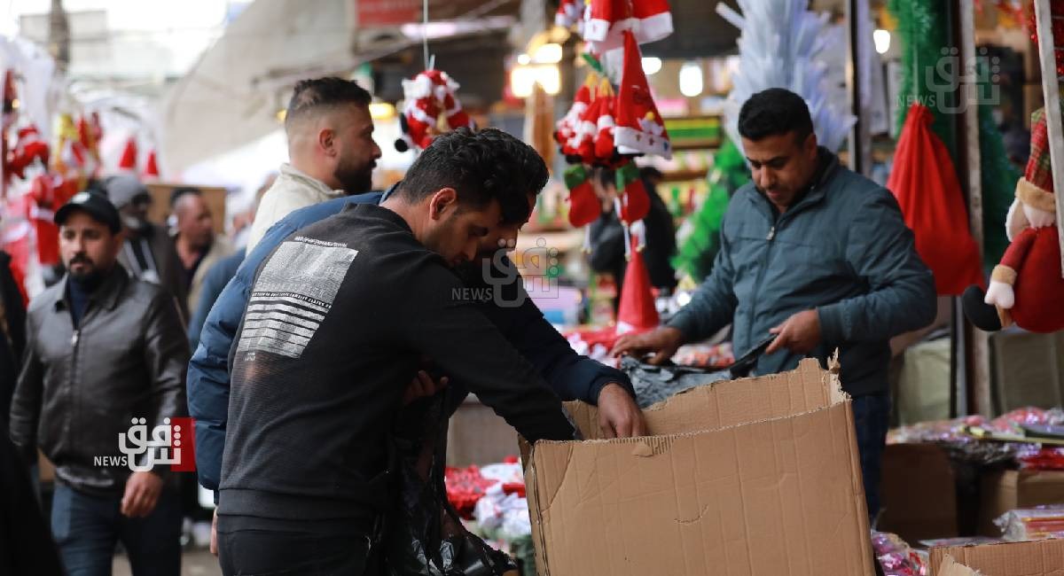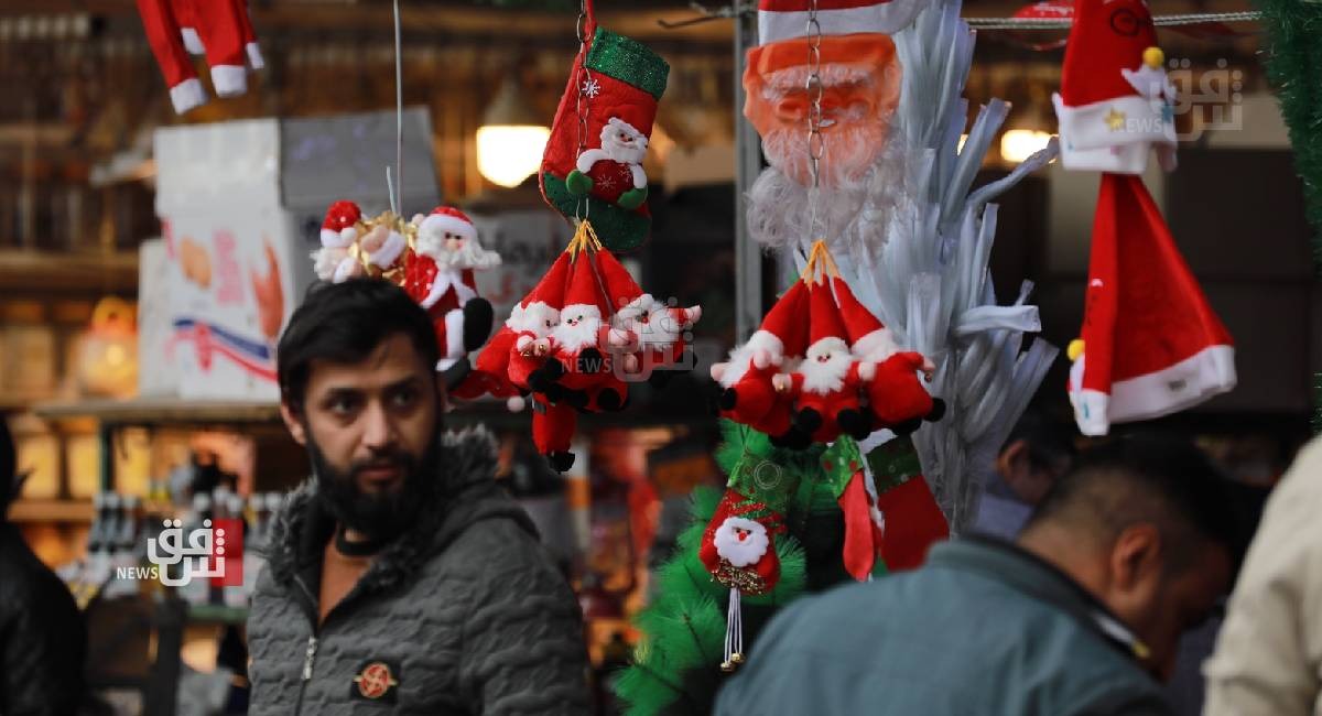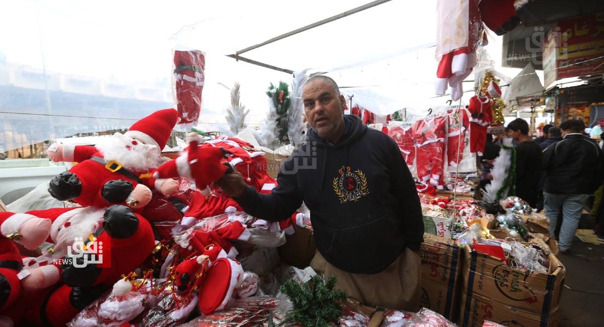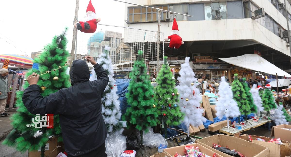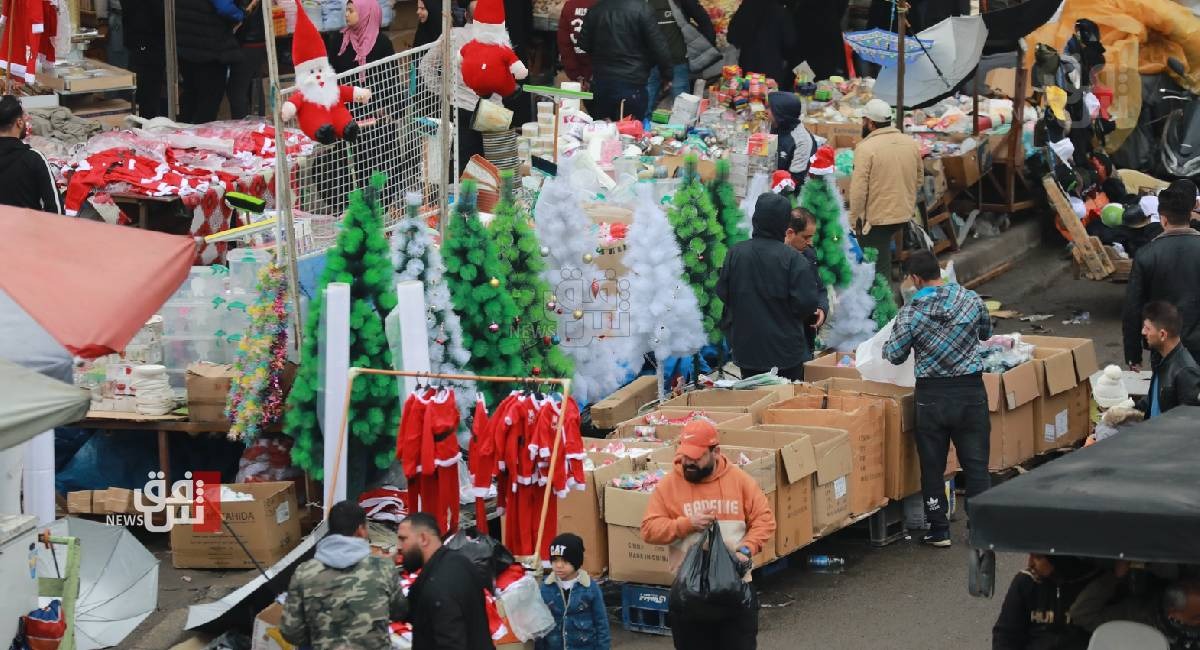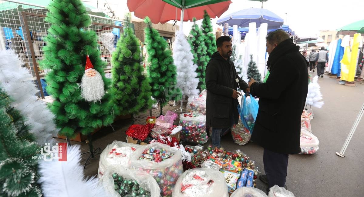 ووثقت كاميرا وكالة شفق نيوز التي تجولت في عدد من مناطق العاصمة وأبرزها منطقة الشورجة ، السوق التجاري الأكبر في بغداد، تحول عربات الباعة المتجولين وعدد من المحال التجارية إلى مراكز بيع كل ما يعنى باحتفالات رأس السنة الجديدة، وأبرزها توافر أشجار أعياد الميلاد وزي بابا نوئيل بأحجام مختلفة تحضيراً للمناسبة،