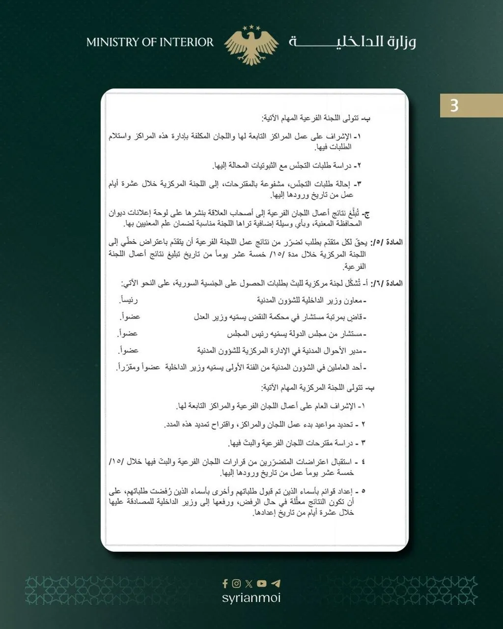 الداخلية السورية تحدد آلية التقديم على الجنسية للمواطنين الكورد (وثائق)