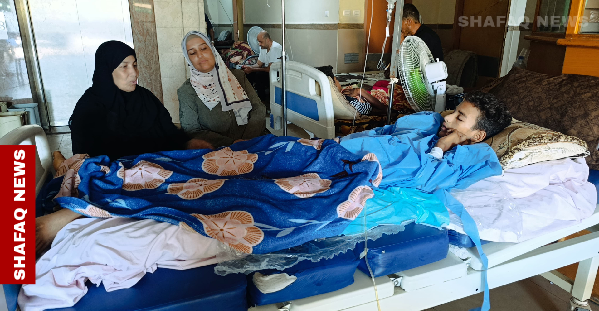 أوضح والد المصاب زكريا النباهين أنهم أخرجوا ابنه إلى باحة المستشفى بسبب ارتفاع