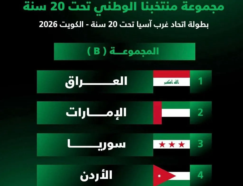 العراق الى جانب الامارات والاردن وسوريا في بطولة غرب آسيا للشباب