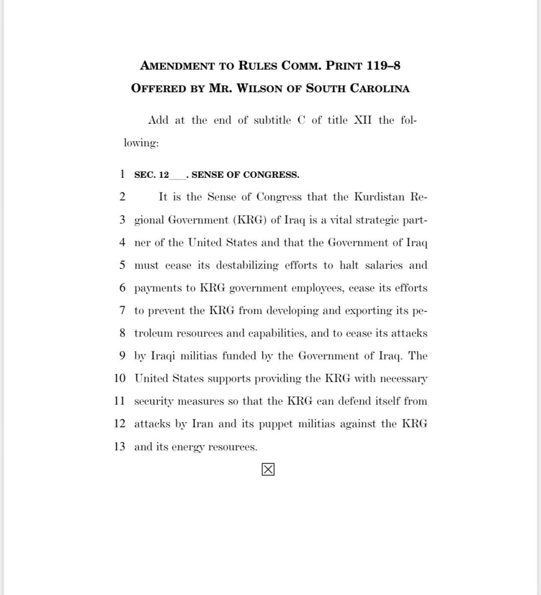 دعا التعديل إلى دعم الولايات المتحدة لتزويد حكومة الإقليم بالتدابير الأمنية