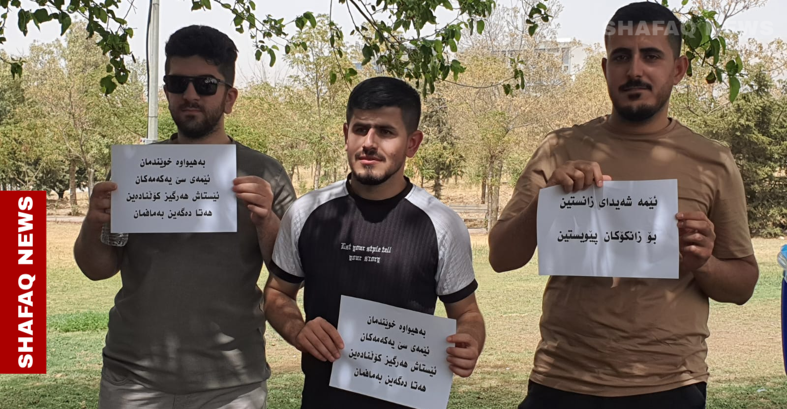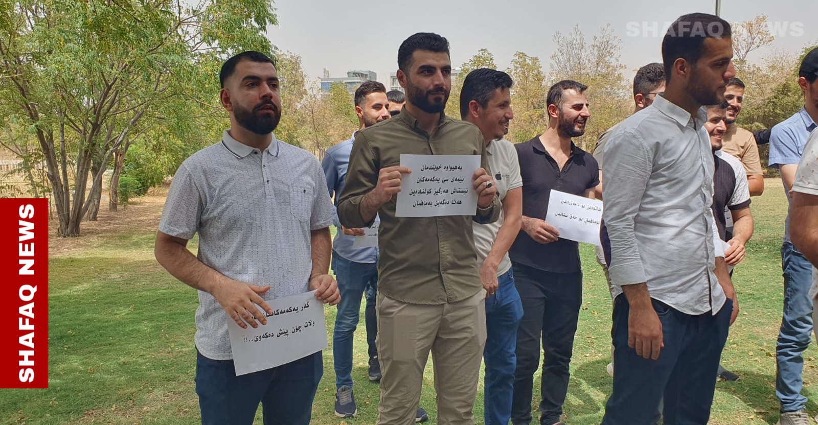السليمانية.. وقفة احتجاجية للأوائل في الكليات والمعاهد للمطالبة بالتعيين (صور)