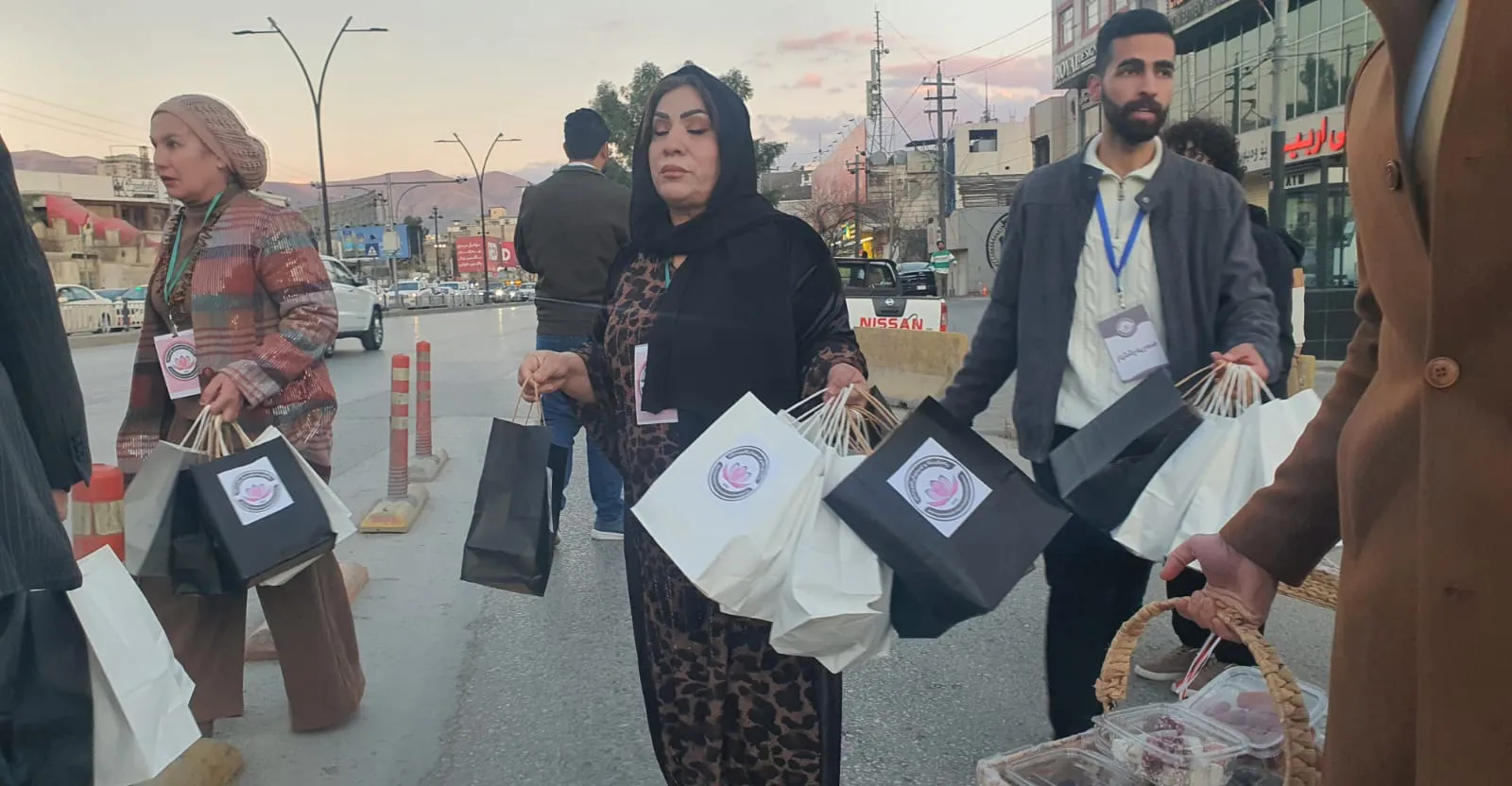 "بيلا" تقود مع كبار السن مبادرة إفطار للصائمين في شوارع السليمانية (صور)