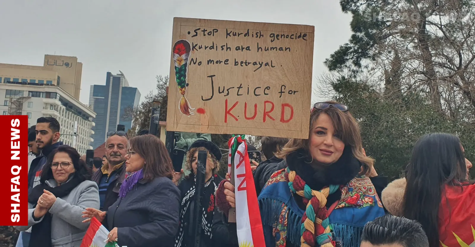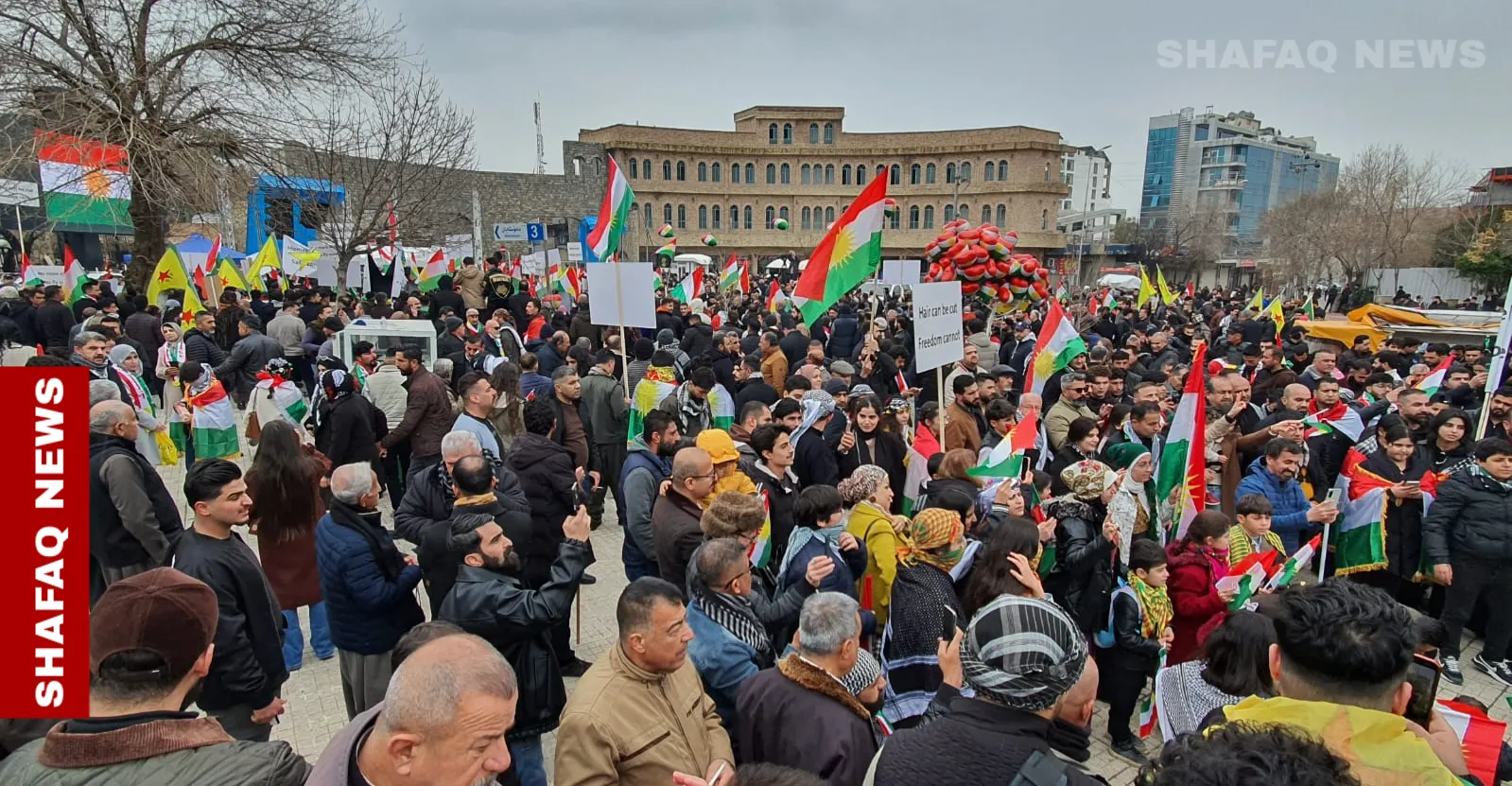 وقال مراسل وكالة شفق نيوز، الذي حضر الاحتجاجات، إن المتظاهرين رفعوا أعلام إقليم كوردستان ولافتات تؤكد وحدة الشعب الكوردي في أجزائه الأربعة، معبرين عن تضامنهم الكامل مع الكورد في سوريا.