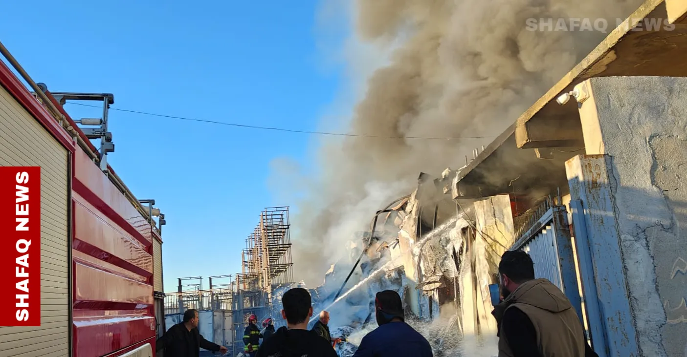 اندلع حريق كبير، صباح اليوم الثلاثاء، في معمل لتصنيع مادة رقائق البطاطا الغذائية "الشيبس" في مدينة اربيل عاصمة اقليم كوردستان.