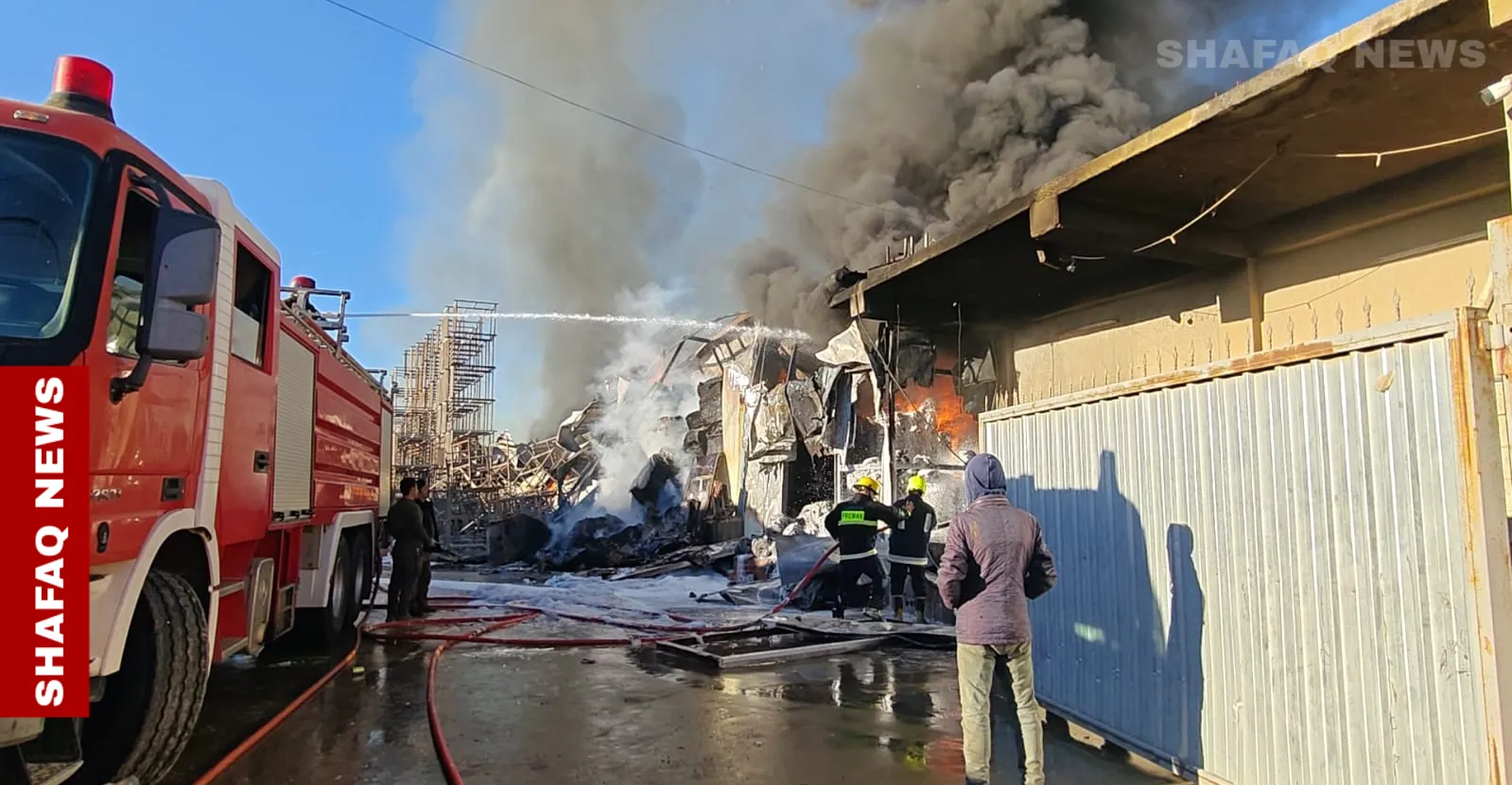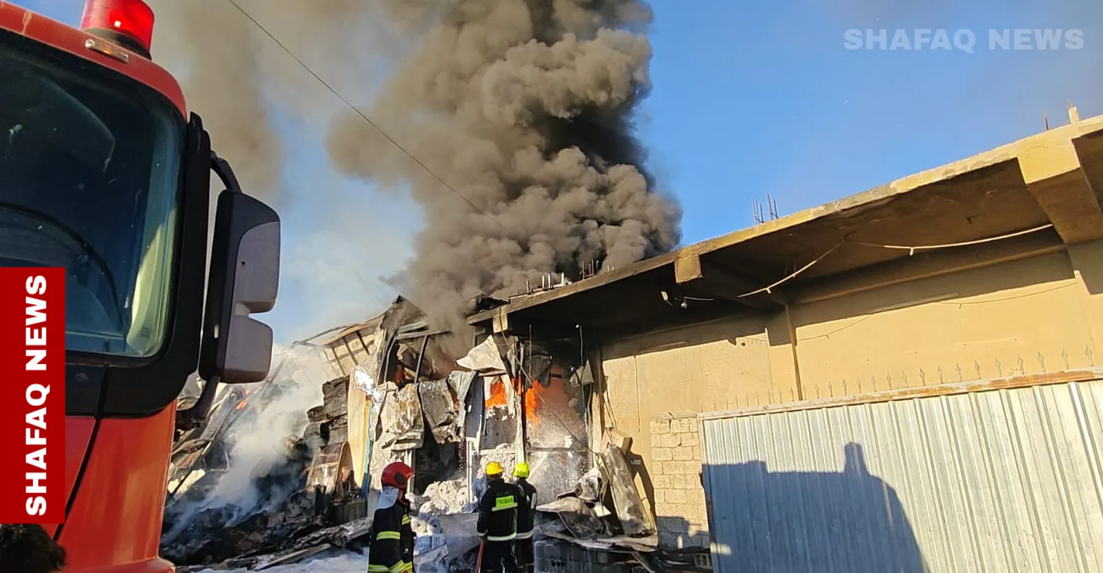 حريق ضخم يلتهم معملا لتصنيع "الشيبس" في اربيل