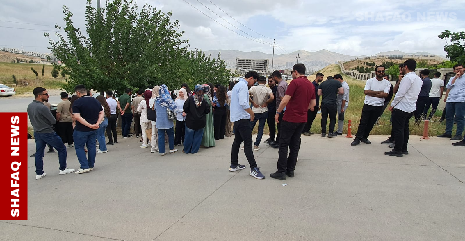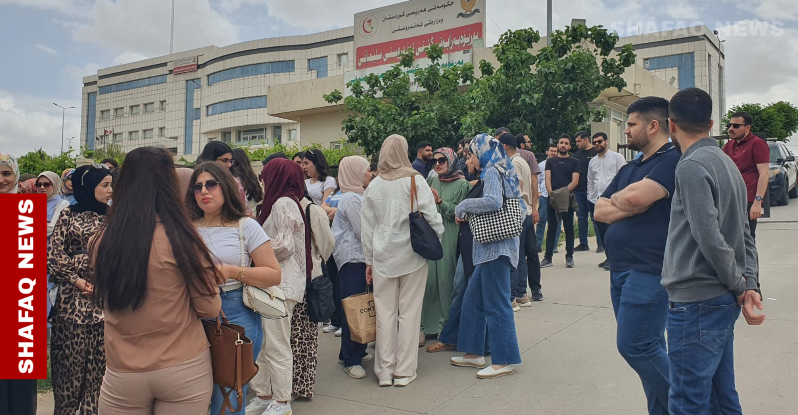 شفق نيوز/ نظّم العشرات من خريجي كليات التمريض في محافظة السليمانية، اليوم الثلاثاء، وقفة احتجاجية أمام مبنى مديرية الصحة، مطالبين حكومة إقليم كوردستان بإصدار قرار عاجل بتعيينهم، بعد مرور أكثر من عام على تخرجهم دون أي استجابة رسمية.