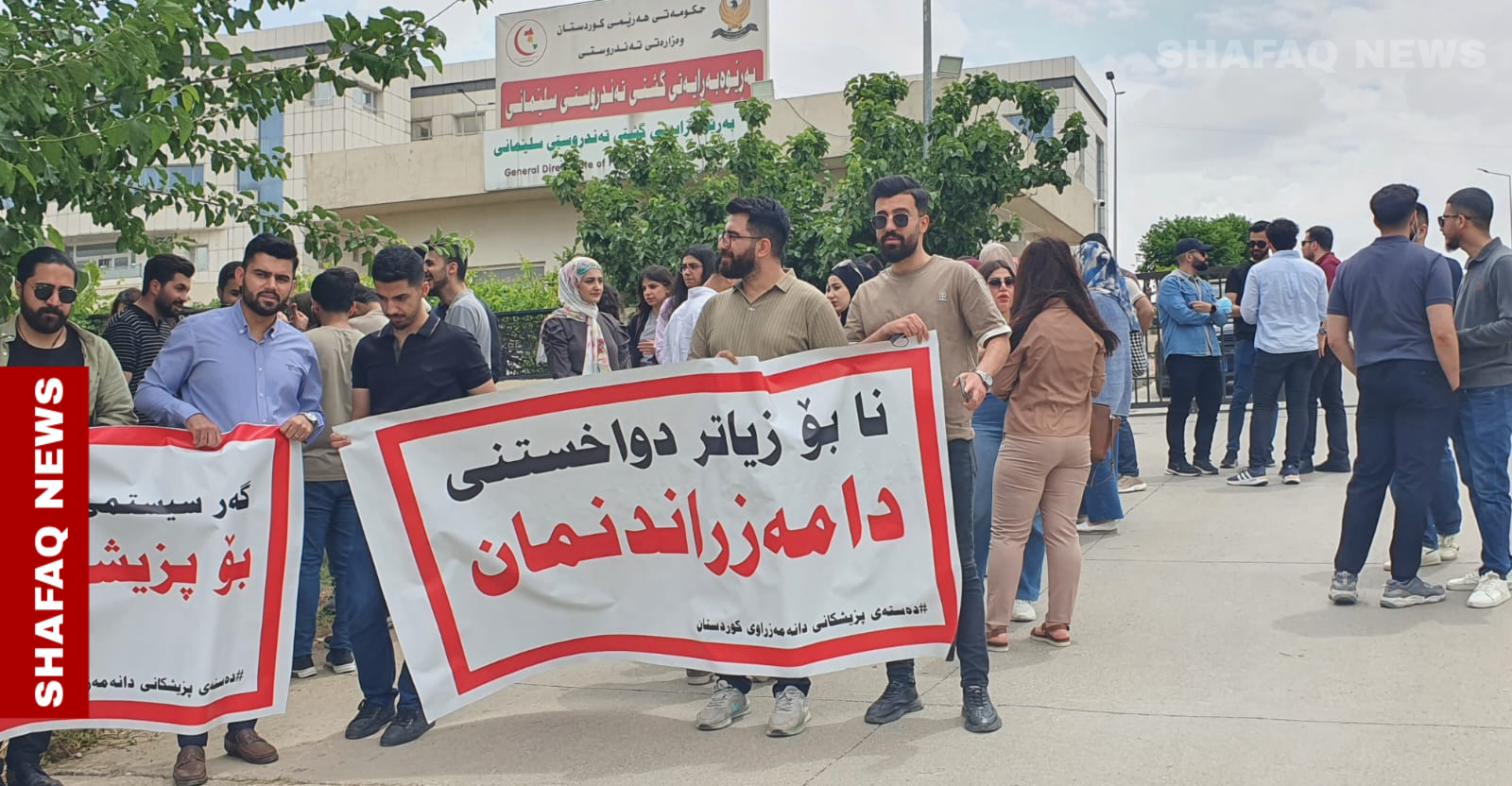 خريجو التمريض في السليمانية يحتجون للمطالبة بـ"التعيين الفوري" (صور)
