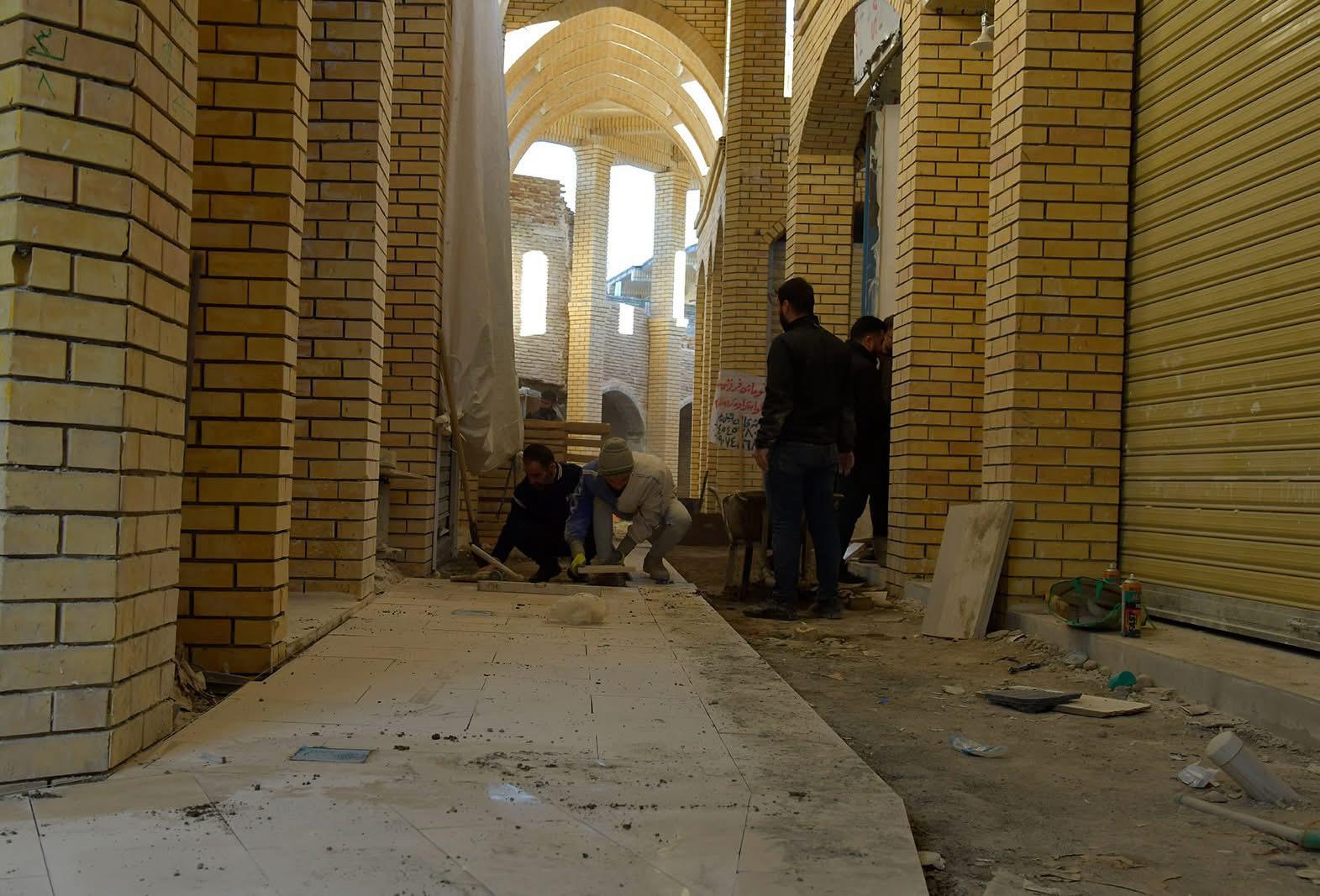 إلى 55 محلاً في الطابق العلوي، وقد اكتملت معظم أعمال الترميم في كلا الطابقين،