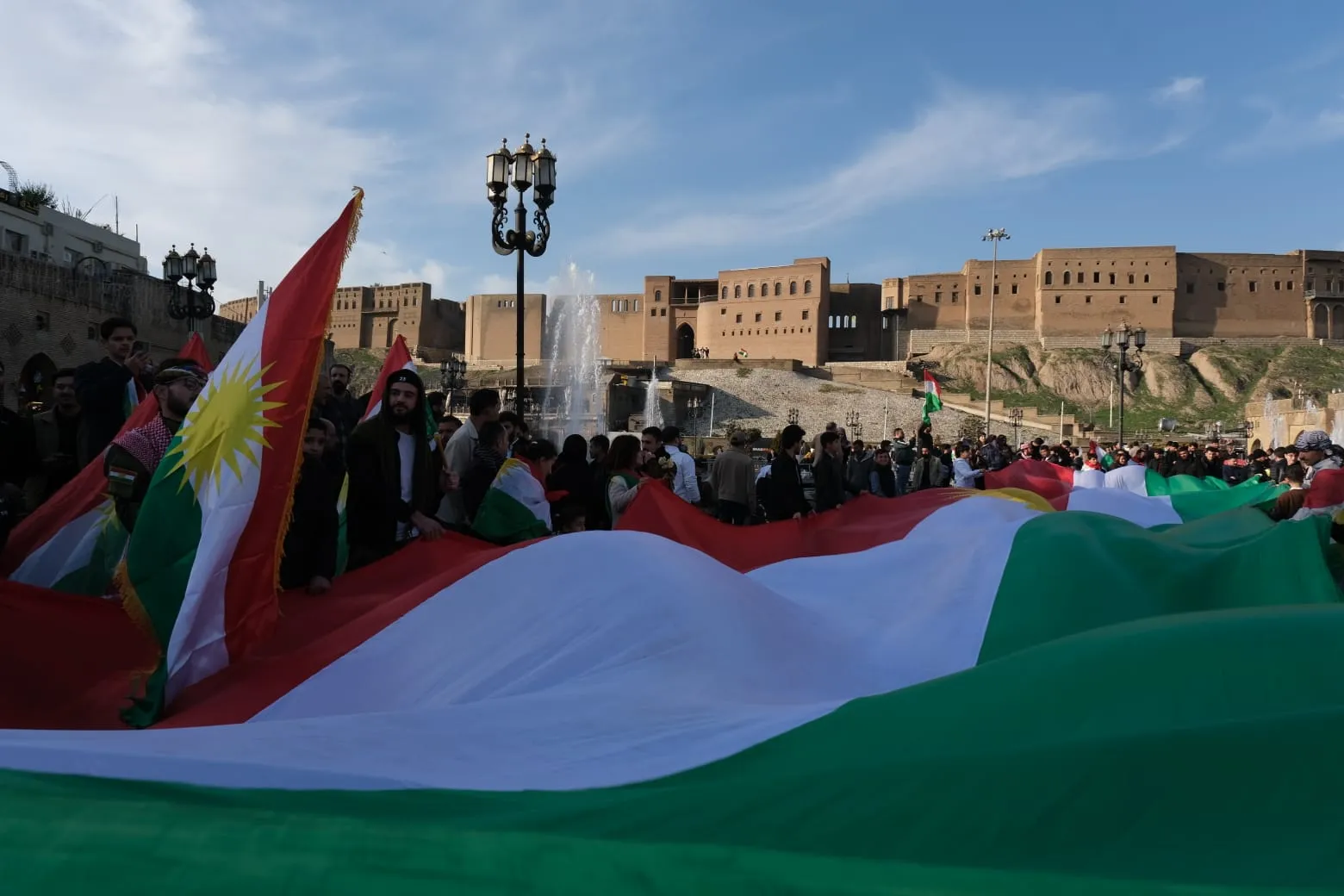 وتجمع المتظاهرون في ساحات مركز المدينة، وتحديداً بالقرب من قلعة أربيل التاريخية، رافعين شعارات ولافتات تطالب بوقف فوري للعمليات العسكرية التي تستهدف المدنيين والبنى التحتية في مناطق "روج آفا".