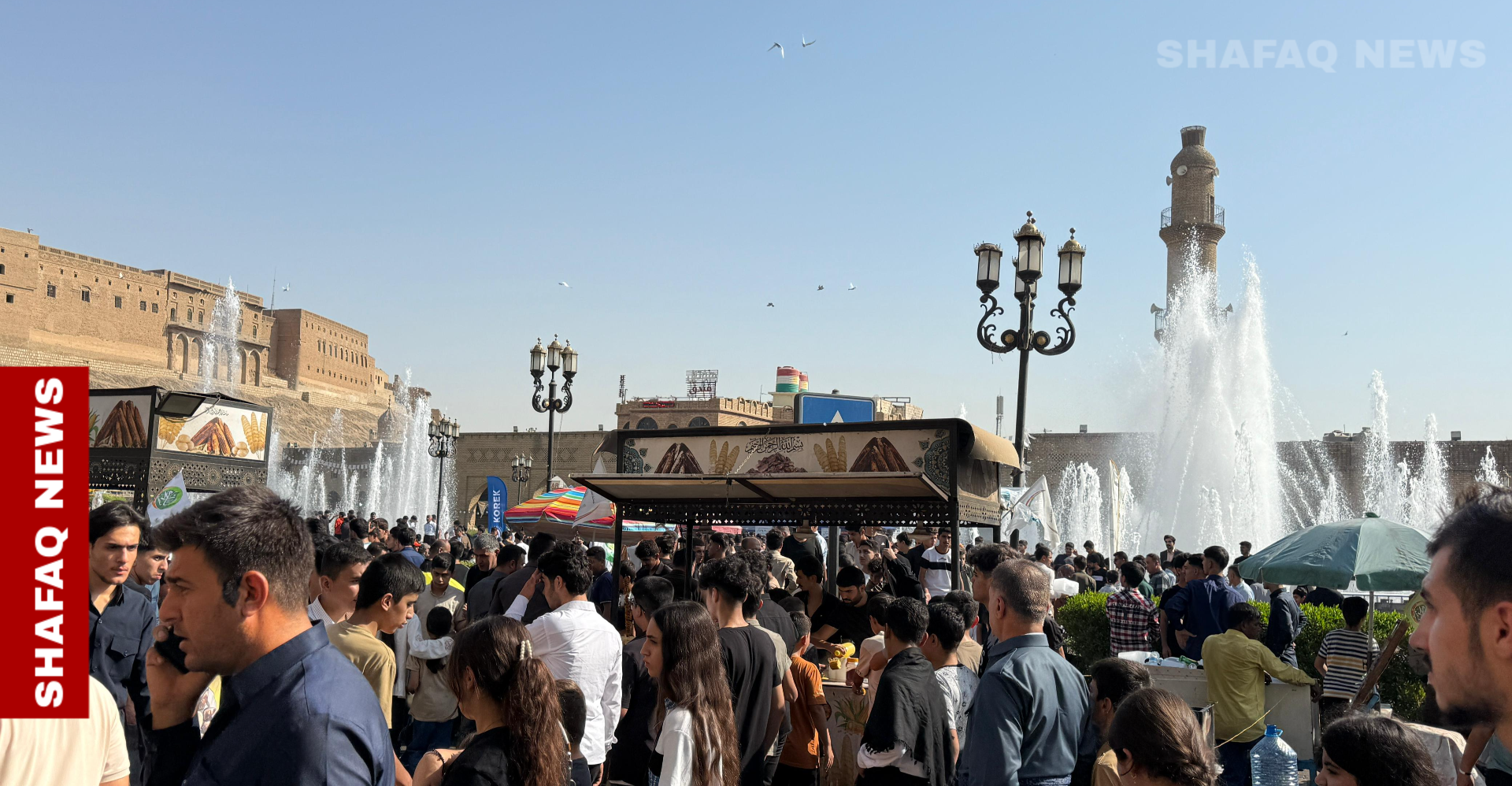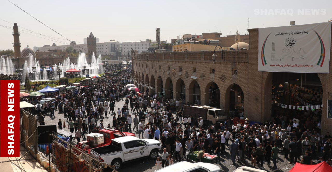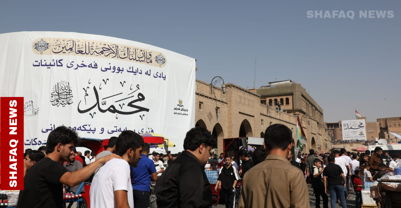 شهدت مدينة أربيل، اليوم الخميس، تجمعاً جماهيرياً واسعاً لإحياء ذكرى المولد النبوي الشريف، حيث احتشد آلاف المواطنين وسط المدينة وعند قلعتها الأثرية للمشاركة في الفعاليات الدينية والاحتفالية الخاصة بالمناسبة.